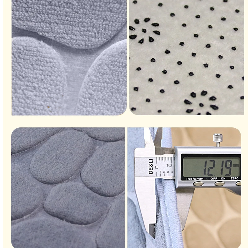 Super soft: mata do kąpieli ma grubą i miękka pianka zapamiętująca kształt, która zapewnia wyjątkowy komfort dla stóp. Dywan został specjalnie zaprojektowany, aby pomóc ci wyeliminować nacisk na stopy i zapewnić zaawansowane wsparcie, którego nie mogą zapewnić inne maty do łazienki.