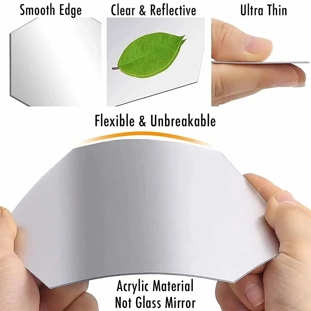 Te sześciokątne lustrzane naklejki ścienne wykonane są z najwyższej jakości akrylu, który jest lekki, wodoodporny, odporny na wilgoć, bezpieczny i niezawodny, wytrzymały i trwały, nie łatwo złamać, może być stosowany z pewnością siebie.