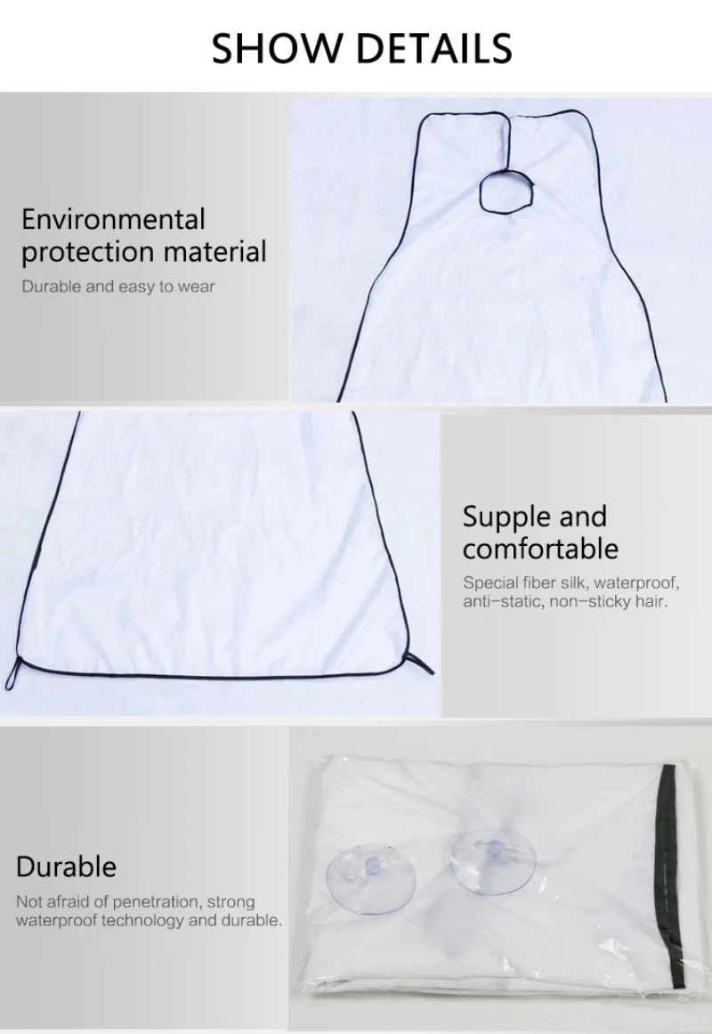 Ten materiał tkanina do strzyżenia i brody jest poliester tafta, wielokrotnego użytku, łatwe do czyszczenia i łatwe do wyschnięcia.