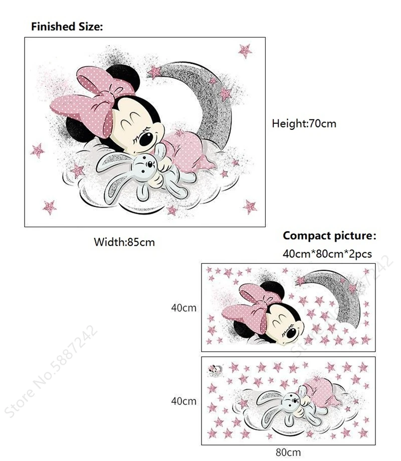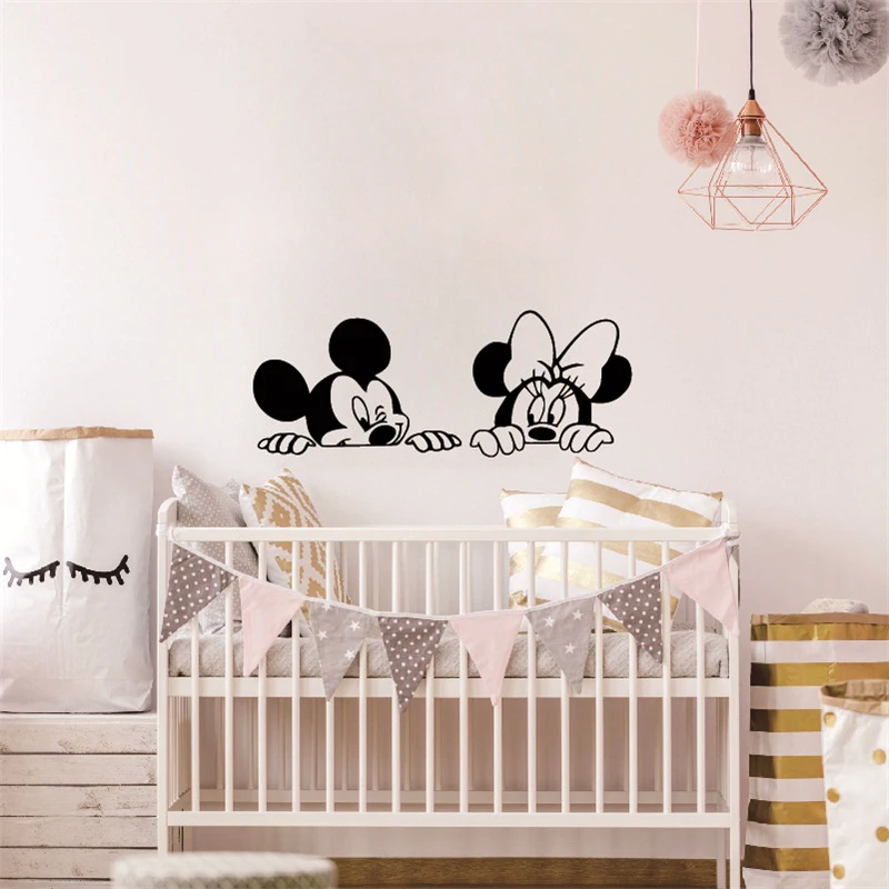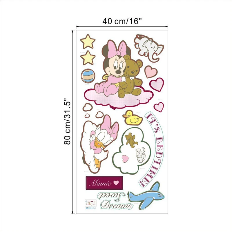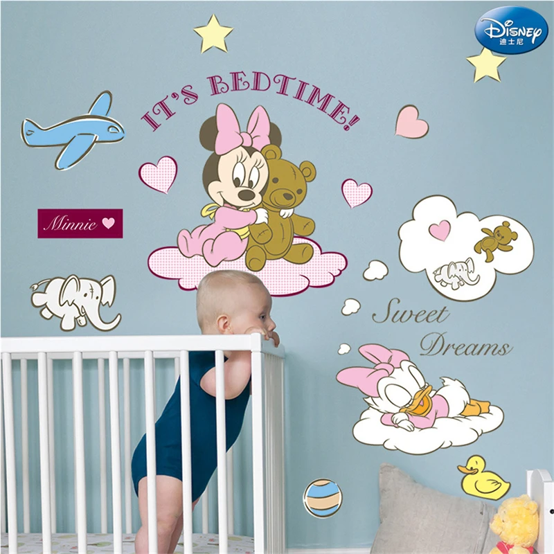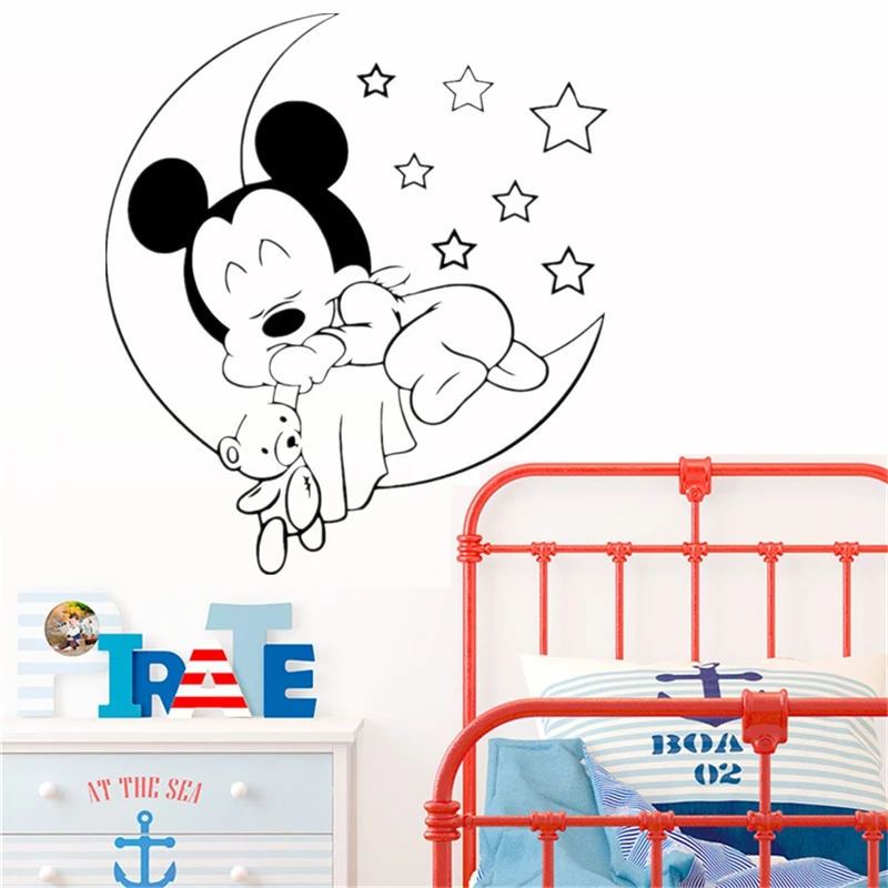 Mickey Minnie Mouse naklejki ścienne dla dzieci pokój sypialnia księżniczka Baby etykiety winylowe strona główna tapeta dekoracyjna sen księżyc przedszkole