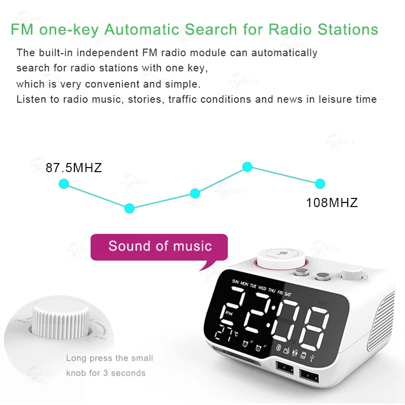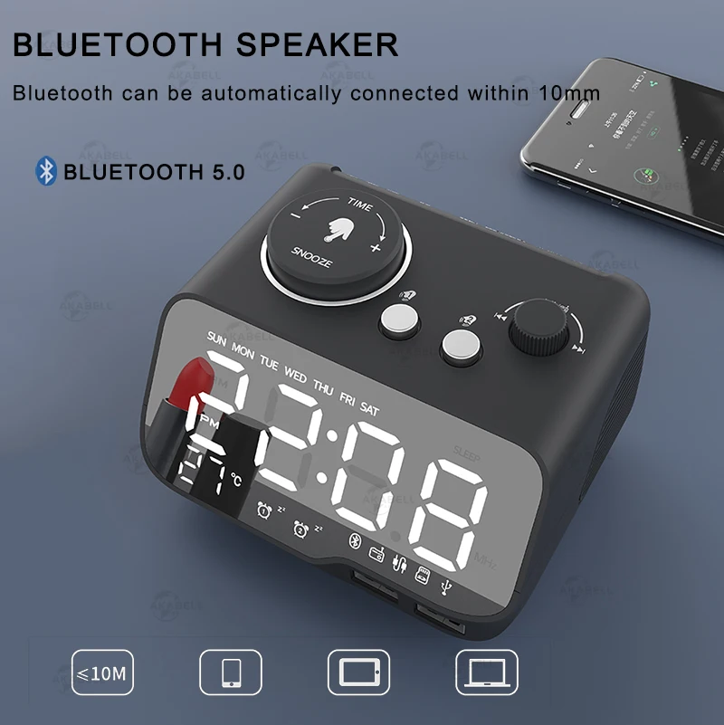 Czy czujesz się ciężko obudzić rano? Czy pracujesz osoby, które muszą obudzić się w określonym czasie? Czy lubisz słuchanie radia? Szukasz inteligentny zegar radio? AKABELL ma na celu dostarczenie klientom produktów o wysokiej jakości, opłacalnych. Bluetooth V5.0 budzik z wbudowanym bezprzewodowy głośnik Hi-Fi zegar z radiem FM, przynosi ci z ładnym przy użyciu doświadczenia.