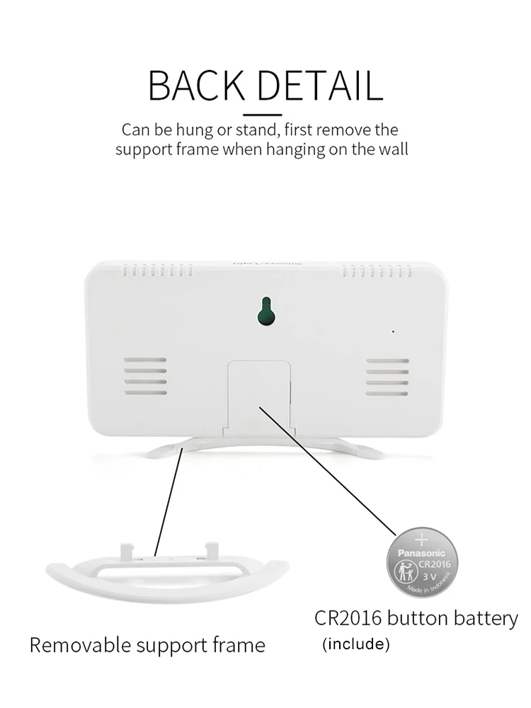 Cyfrowy budzik ma 3 poziomy jasności: niski, średni, wysoki. Można go ustawić automatycznie lub ręcznie. W trybie nocnym jasność ekranu automatycznie będzie niska, brak oślepiających świateł lub irytujących dźwięków zakłóca sen, humanizowany design, tworzy spokojne środowisko do snu