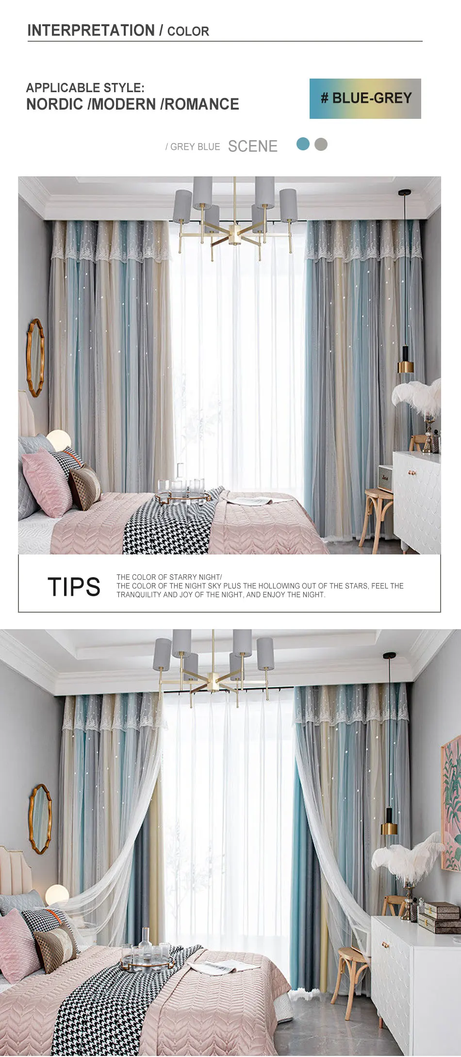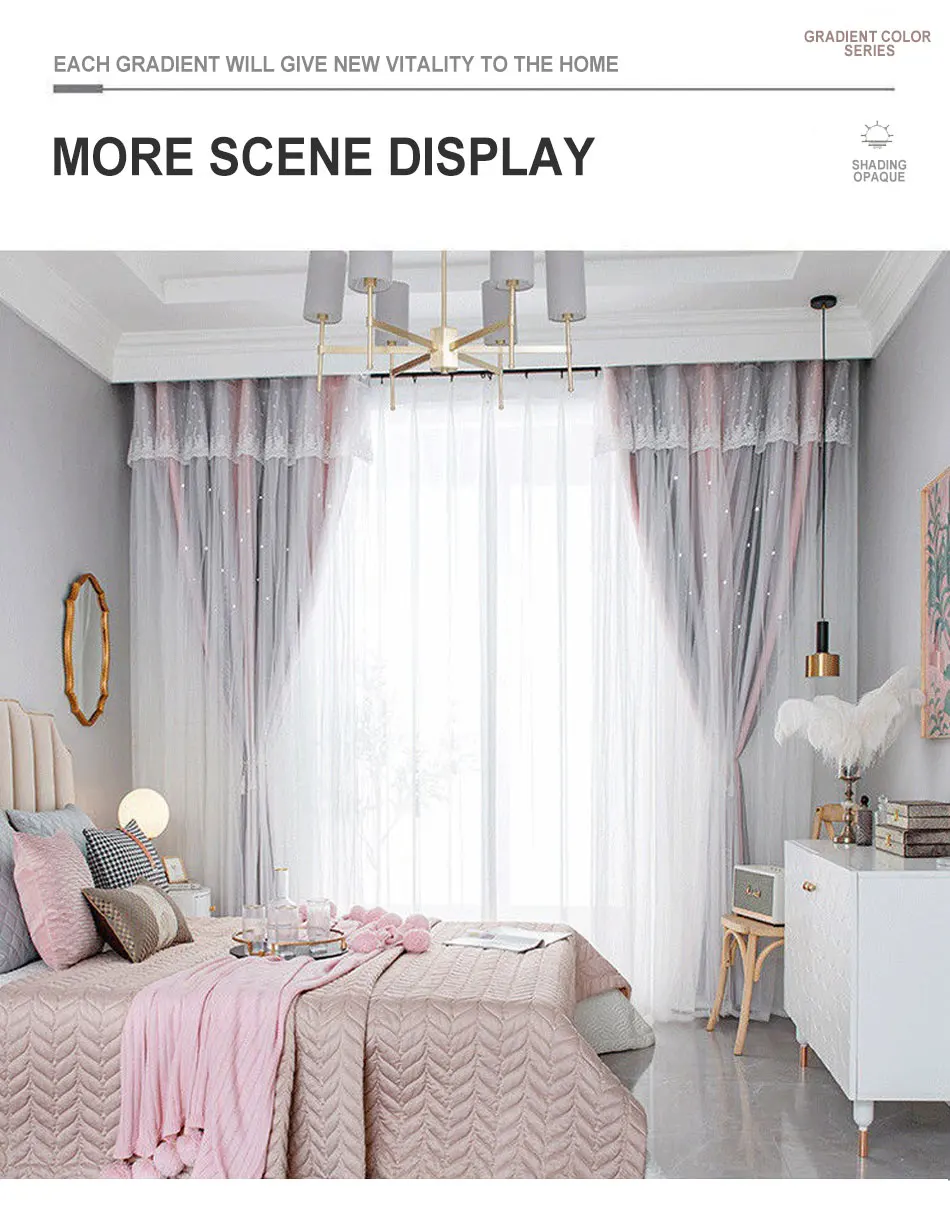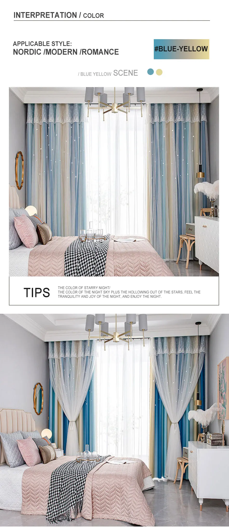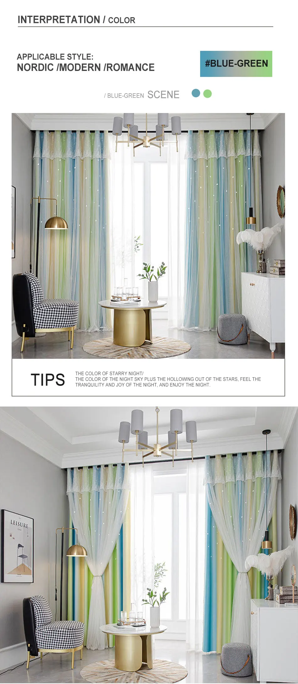 1. Nowa aktualizacja jest dopasowana do zasłony gradient zasłona koronkowa, która jest bardziej modna i piękna, i może być łatwo dopasowana bez wybrednych elementy wyposażenia domu.