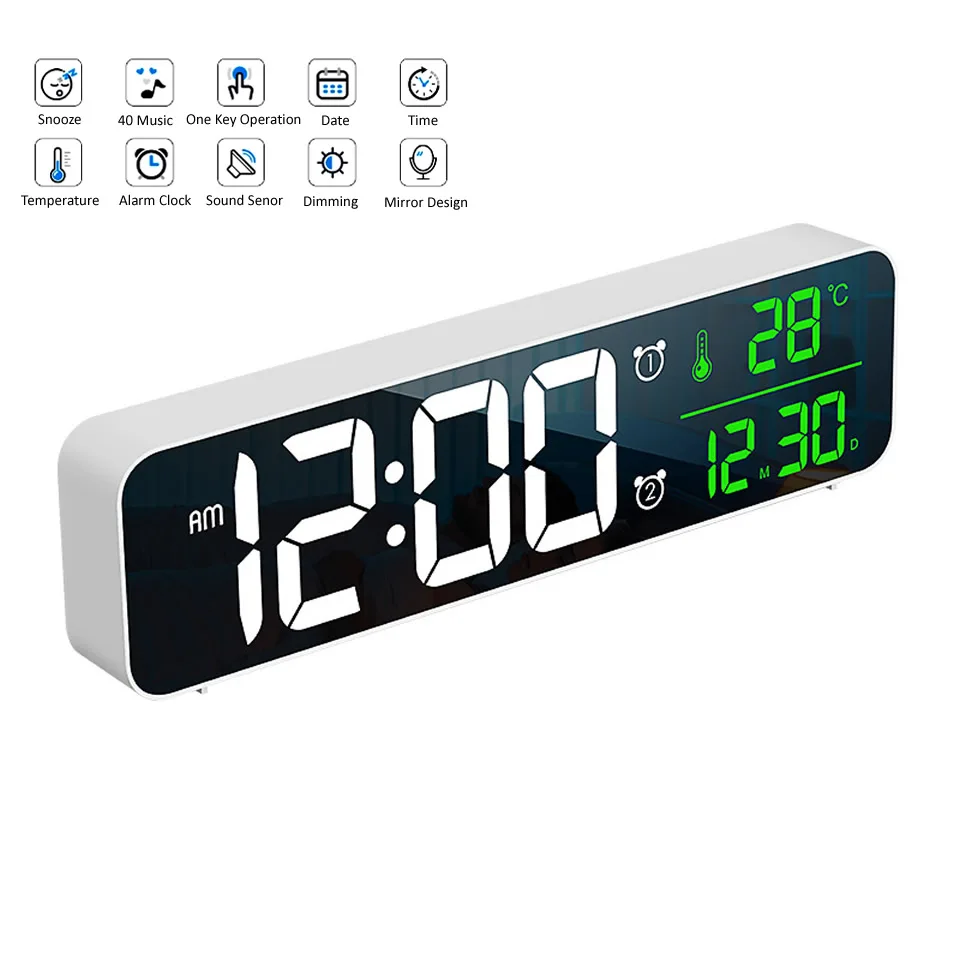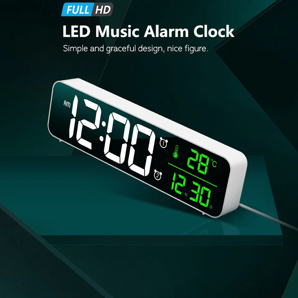 Muzyka cyfrowy budzik LED zegar zegarek zegar cyfrowy wyświetlanie daty temperatury