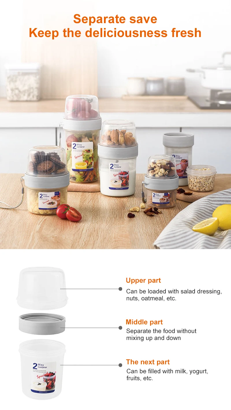 Na zewnątrz podróży do przechowywania świeżego ramka 2-warstwa zamknięte lodówka plastikowy pojemnik do przevhowywania pojemnik na Lunch na śniadanie owsianka wyciek szczelny kubek