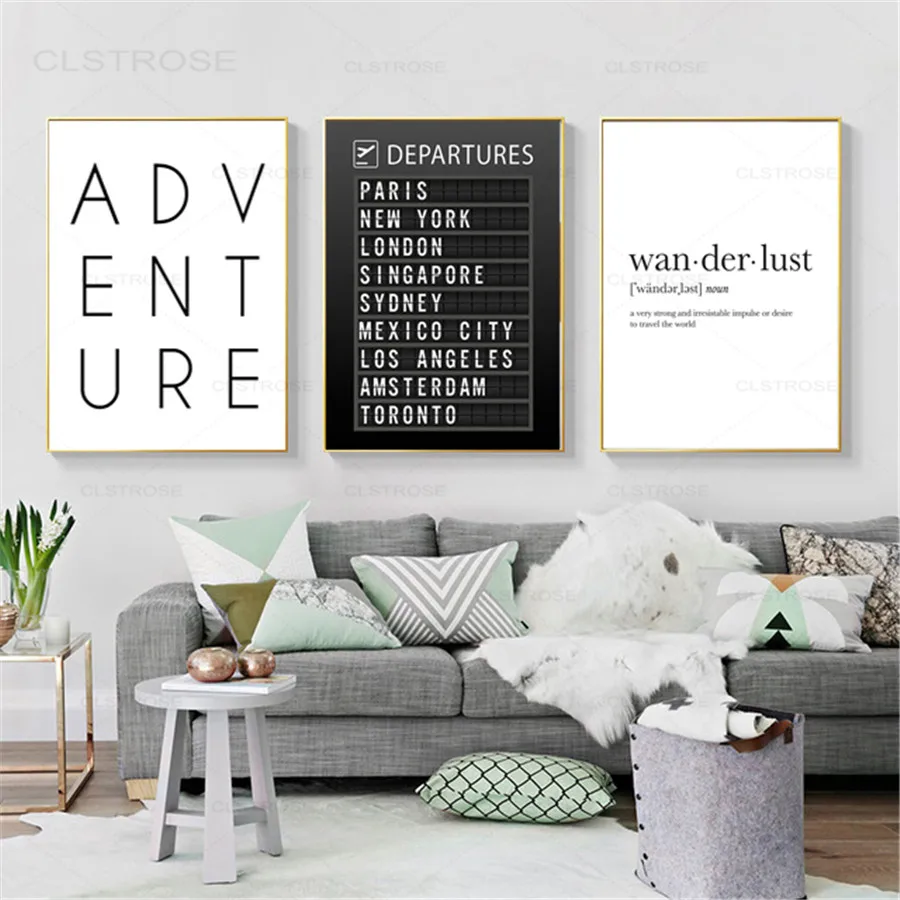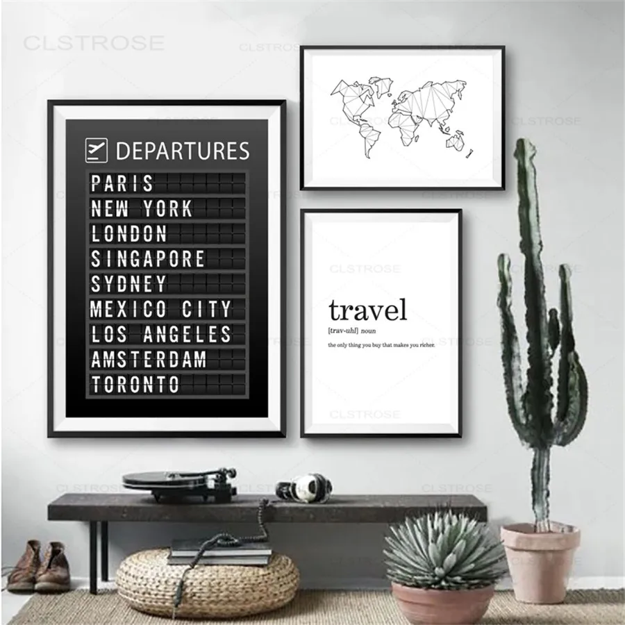 Niestandardowe podróże Wall Art Picture Airport Board plakat docelowy obraz na płótnie do salonu dekoracja wnętrz wydruki na mapie świata