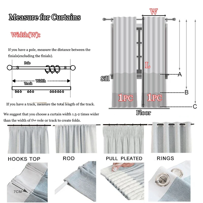-2. Rozmiar: W = szerokość, zwykle szerokość kurtyny = 2 razy karnisz lub szynę. H/L = wysokość, swobodna regulacja, maks. 2.65 metra.