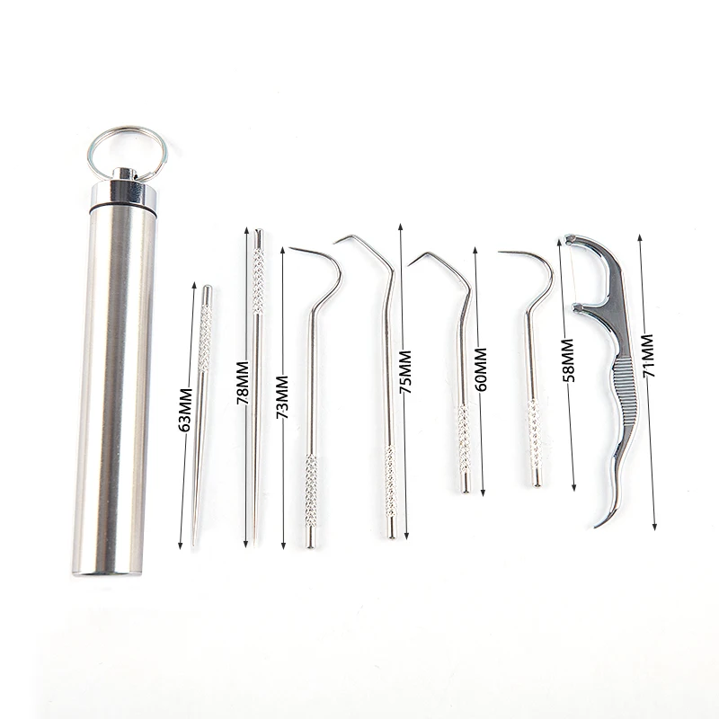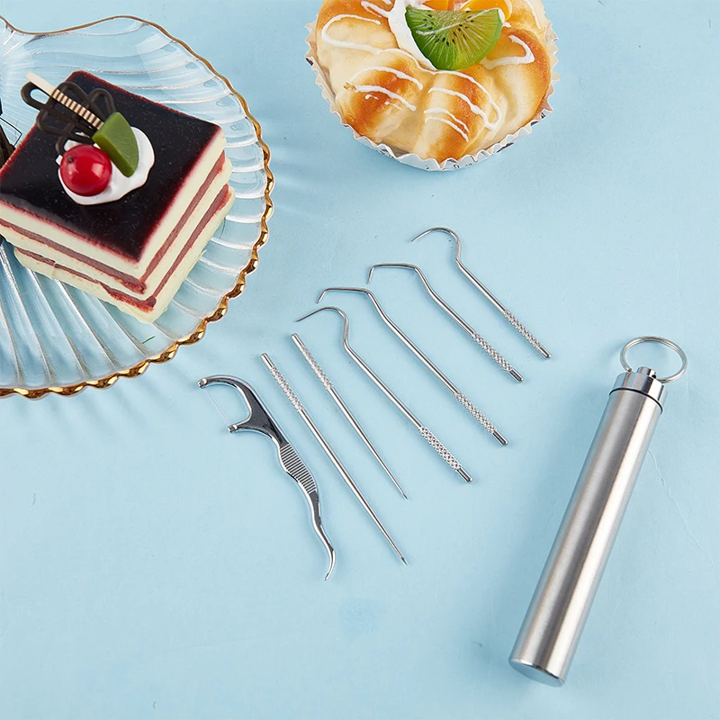5. Intimate design: metalowe wykałaczki z krzyżową teksturą są wygodne do trzymania i niełatwe do zsunięcia z rąk. Praktyczne narzędzia zapewniające czyste zęby i zdrowe. Wisząca klamra pomaga łatwo przenosić pudełko wykałaczek, aby spełnić twoje codzienne potrzeby.