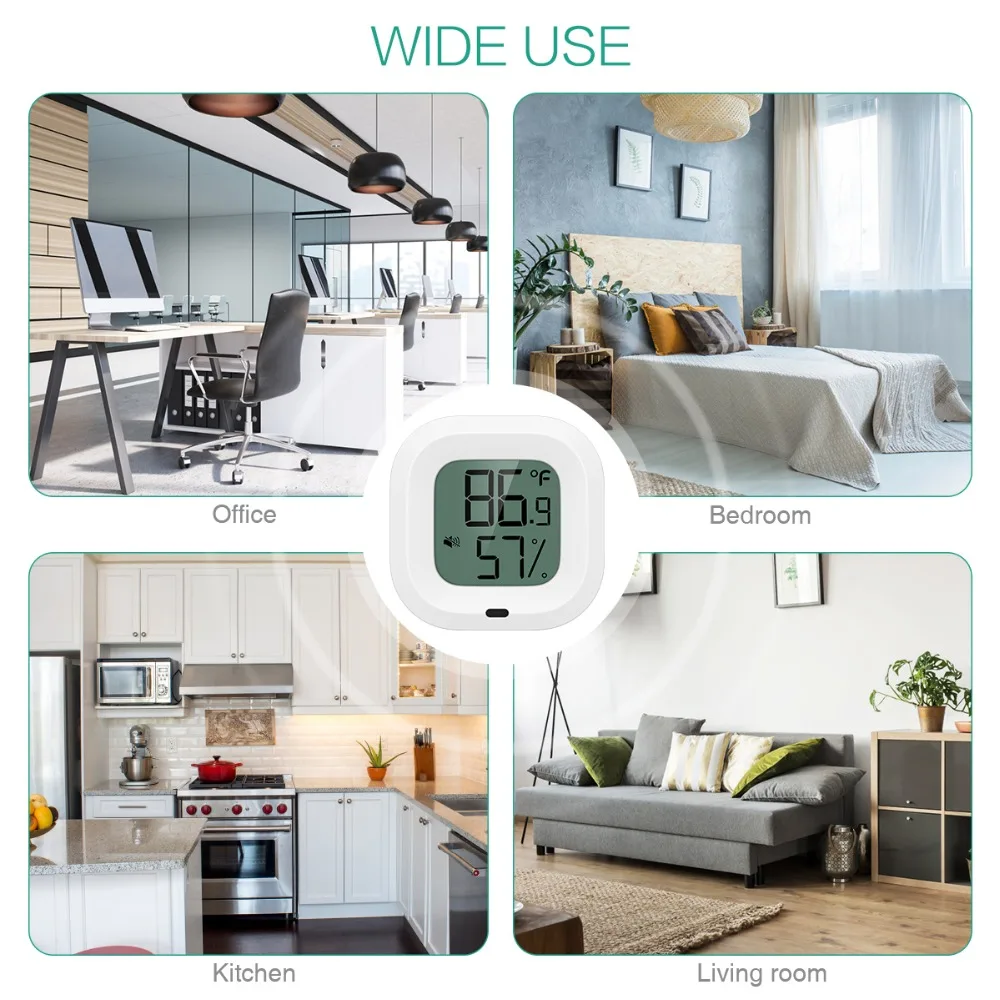 【Aplikacja】 żywotność baterii wynosi około roku. Wiszący otwór jest przeznaczony do różnych miejsc, jak chcesz. Idealny do monitorowania domu, zwierząt domowych, lodówek, zamrażarek, chłodnic, piwnic z winami, szklarni i instrumentów muzycznych.