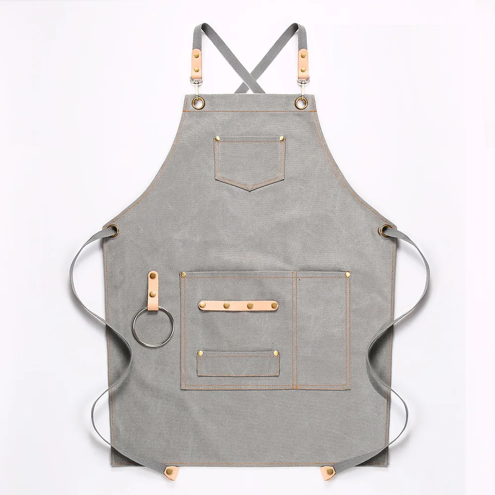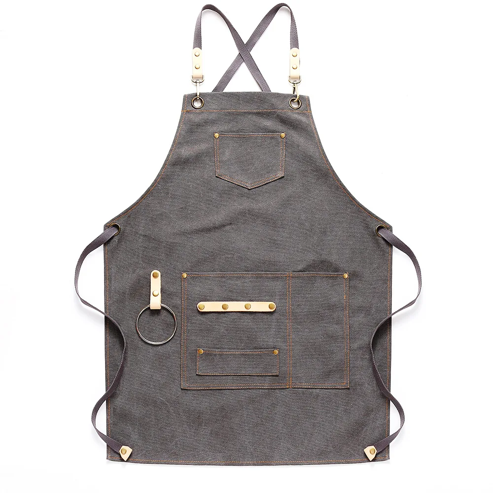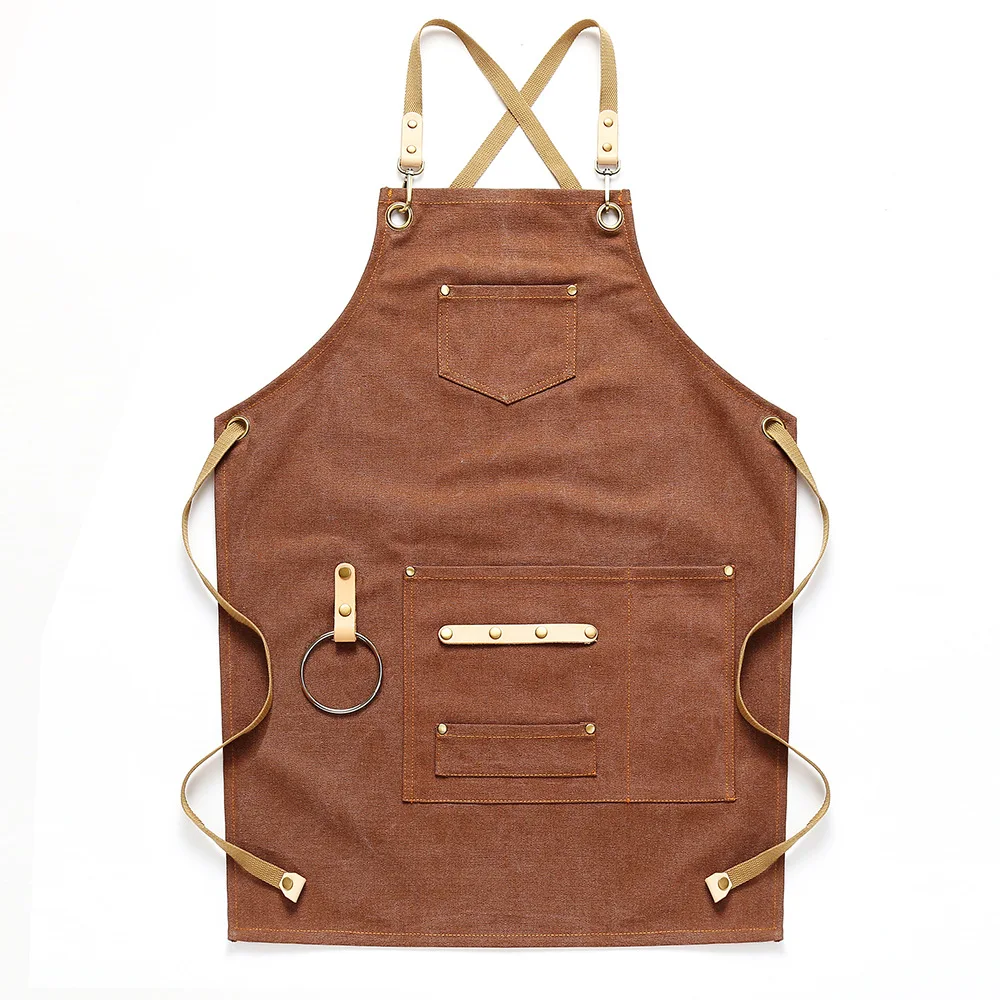 Płótno Bib skórzany szef kuchni fartuch kuchenny kobiety mężczyźni Barista barman kieszenie strona główna fryzjer kawiarnia fartuszek ochronny