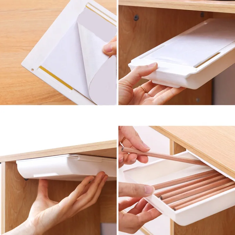 1. Ukryty schowek, konstrukcja do zawieszenia, nie zajmuje miejsca, jest łatwy do przechowywania, a pulpit nie jest brudny