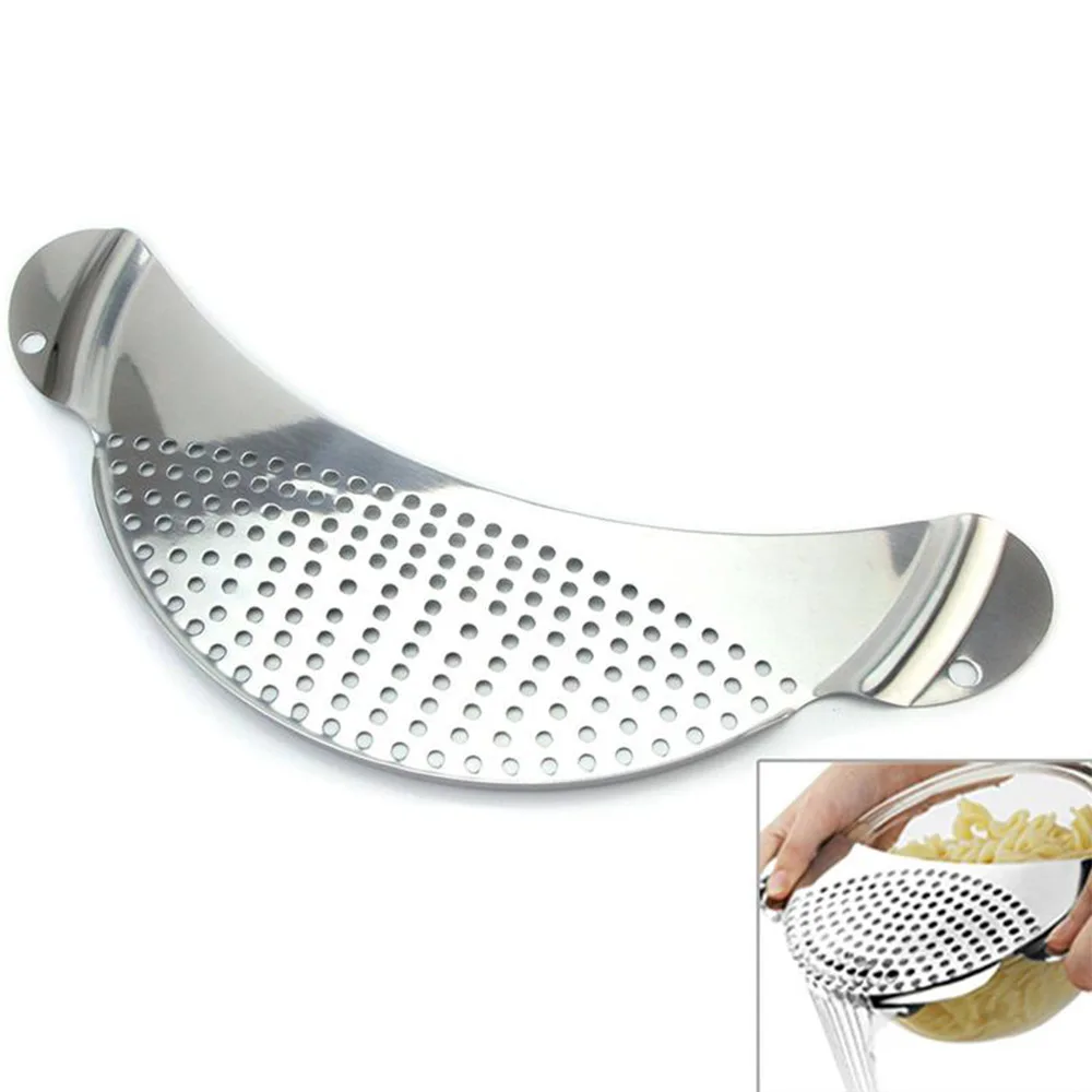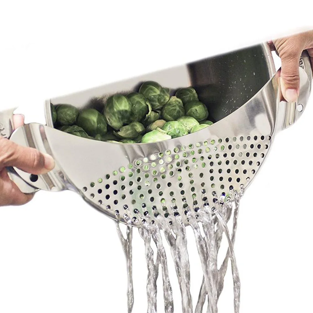 -Trzymaj ten sitko do patelnia ze stali nierdzewnej na wierzchu garnka i po prostu przechyl garnek, aby odcedzić makaron, ryż itp.