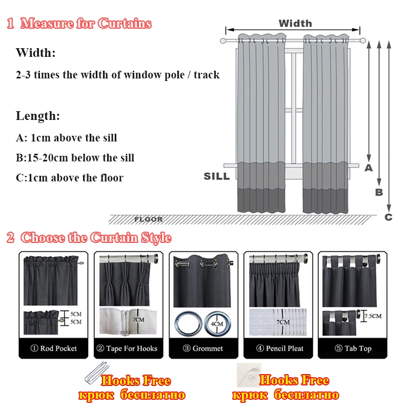 3. Wskazówki: dla właściwej pełności panele powinny mierzyć2-3 razySzerokość twojego okna