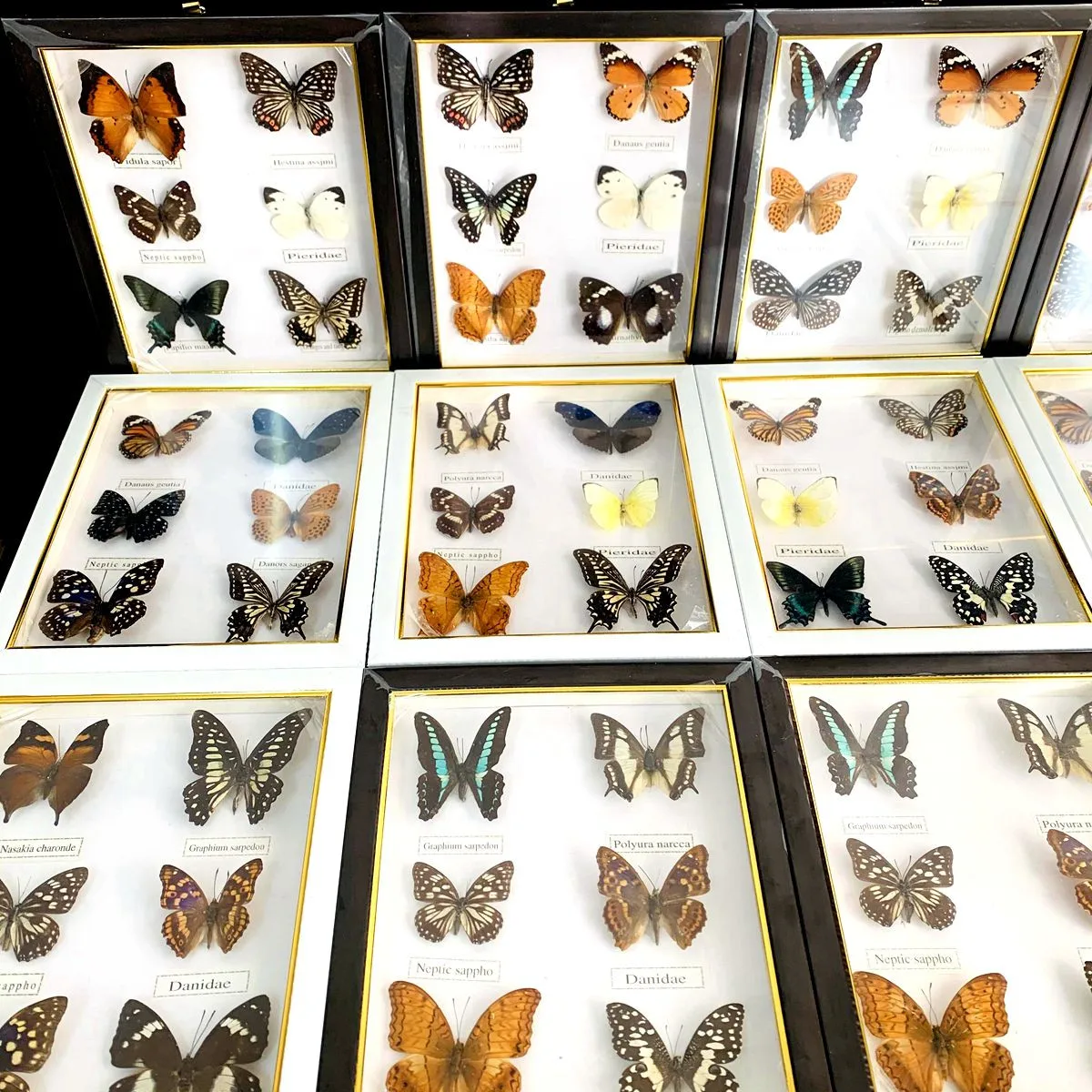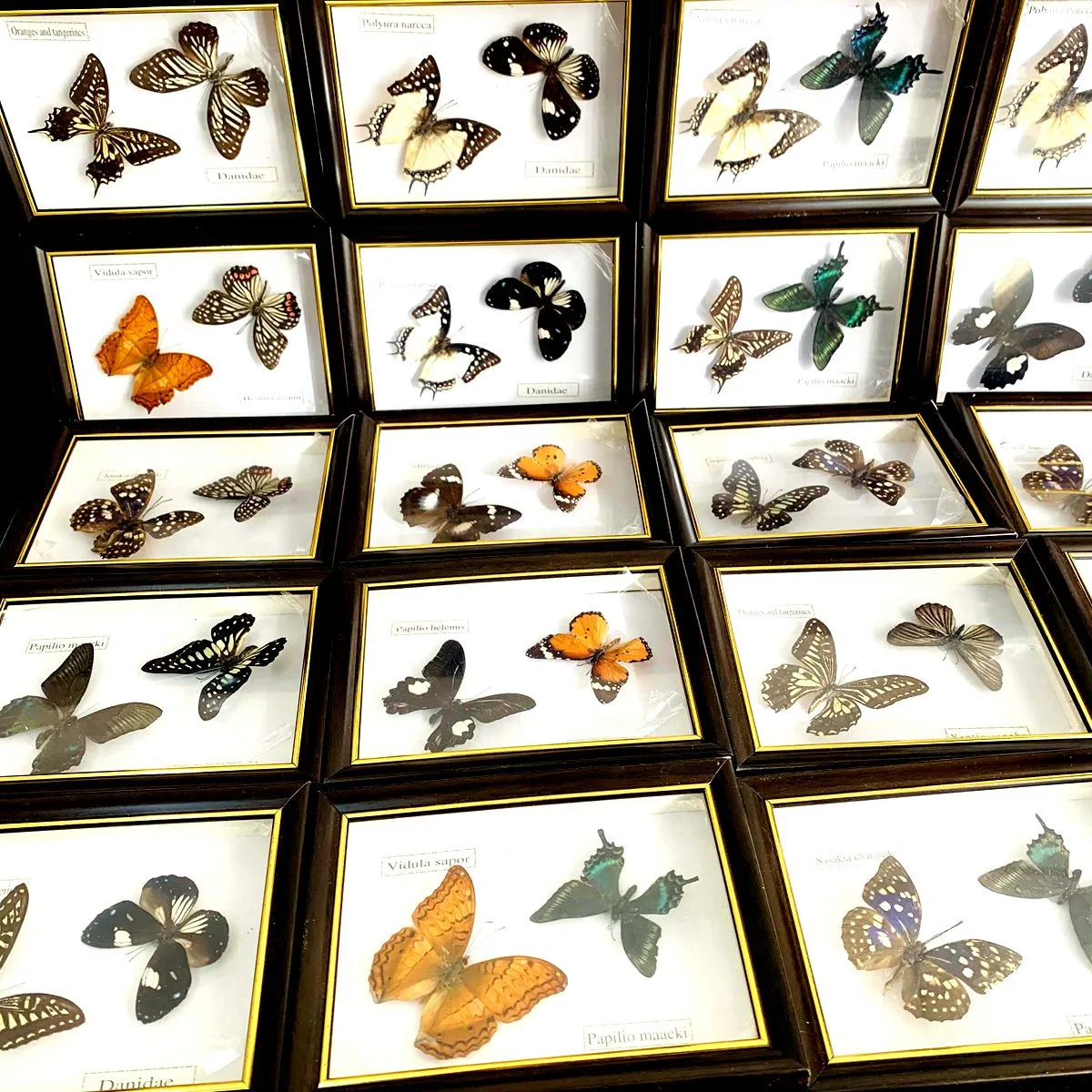 Materiał: naturalny motyl (każdy motyl ma angielską etykietę)