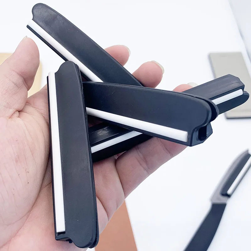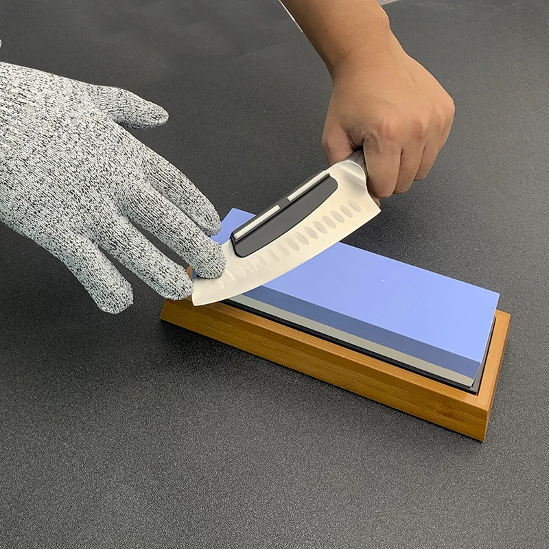 2. Obie ręce trzymają uchwyt i tył noża, część ceramiczna stykają się z powierzchnią osełki lub diamentu, tworzą ostrze noża pod stałym kątem, przesuwają ostrze, tam iz powrotem nad ostrzałką za pomocą małego nacisku.