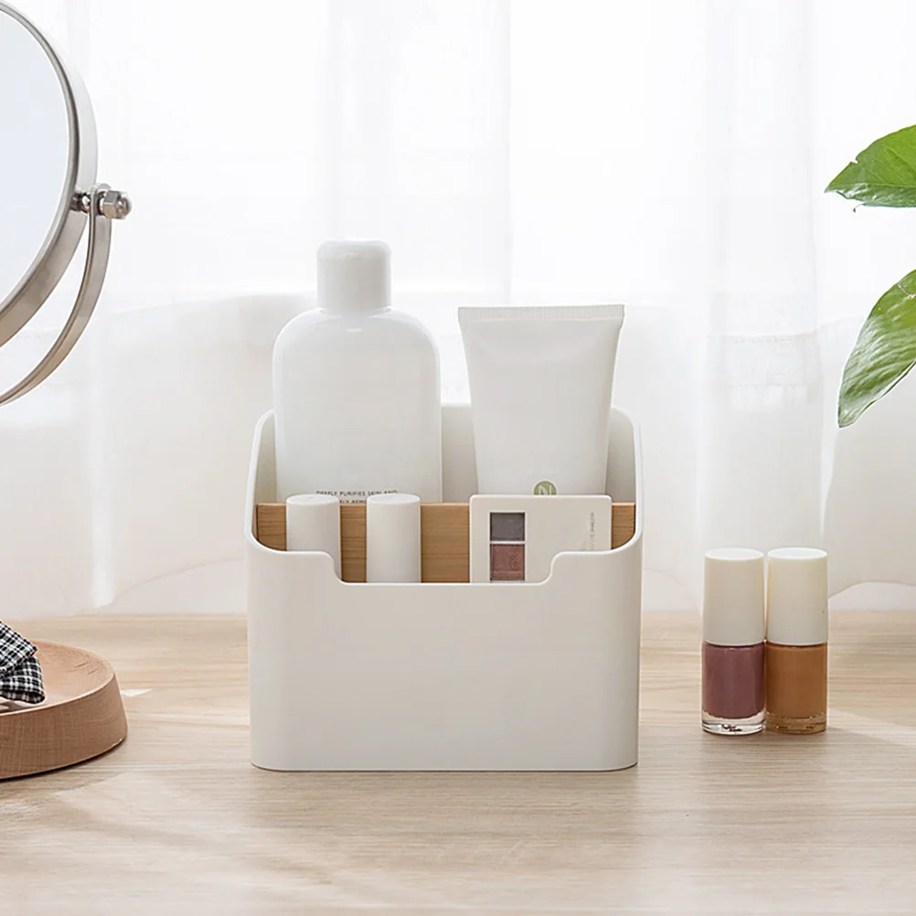 Ten organizer na biurko wykonany jest z materiałów przyjaznych dla środowiska, bezpieczny i nietoksyczny. Wyposażony w 2 schowki ułatwia przechowywanie różnych rozmiarów i rodzajów rzeczy. Utrzymuj porządek w biurku. Może być stosowany w salonie do przechowywania przekąsek, zdalnego sterowania, rozmaitości i tak dalej na stole, może być również stosowany w łazience na przechowywanie kosmetyków.
