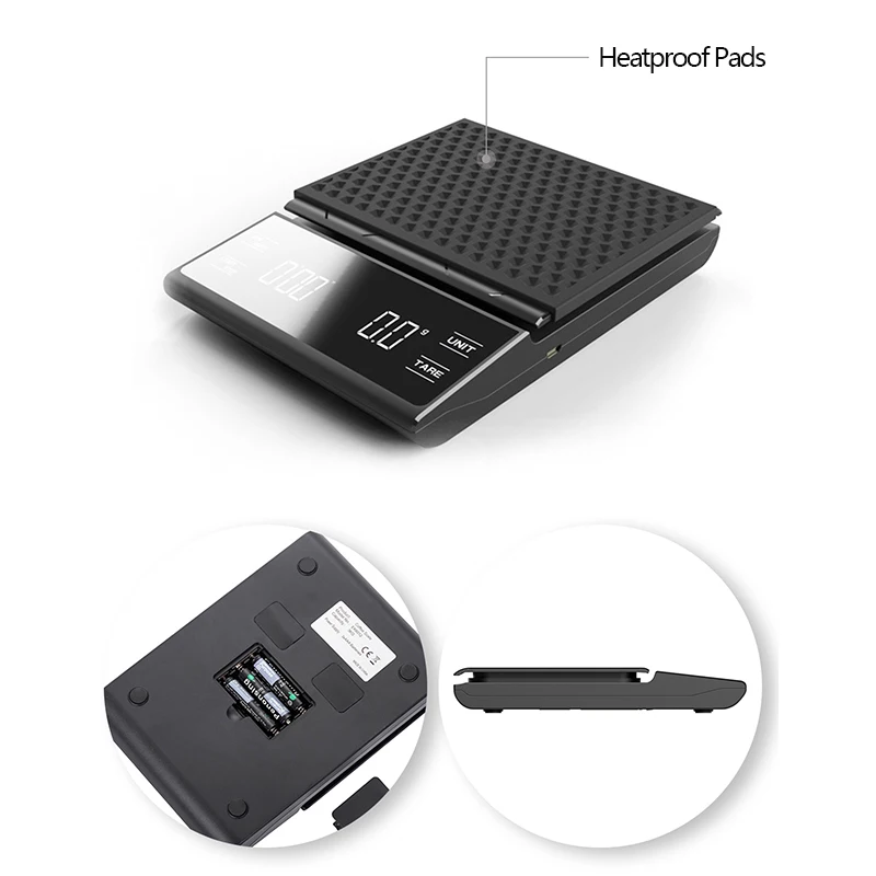 Przenośny elektroniczny cyfrowy waga do kawy z zegarem wysokiej precyzji wyświetlacz LED gospodarstwa domowego waga równowagi kuchenne miarki