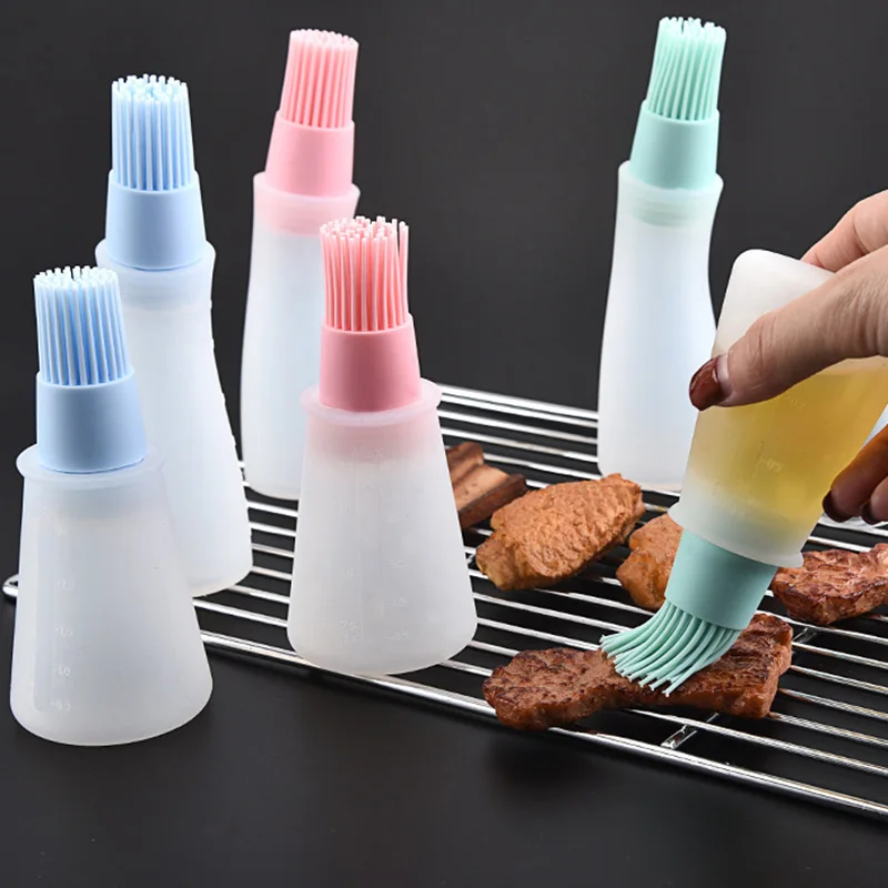 Przenośny olej silikonowy butelka ze szczotką Grill szczotki do olejowania płynny olej ciasto na pieczenie w kuchni narzędzie do grillowania narzędzia kuchenne do grillowania
