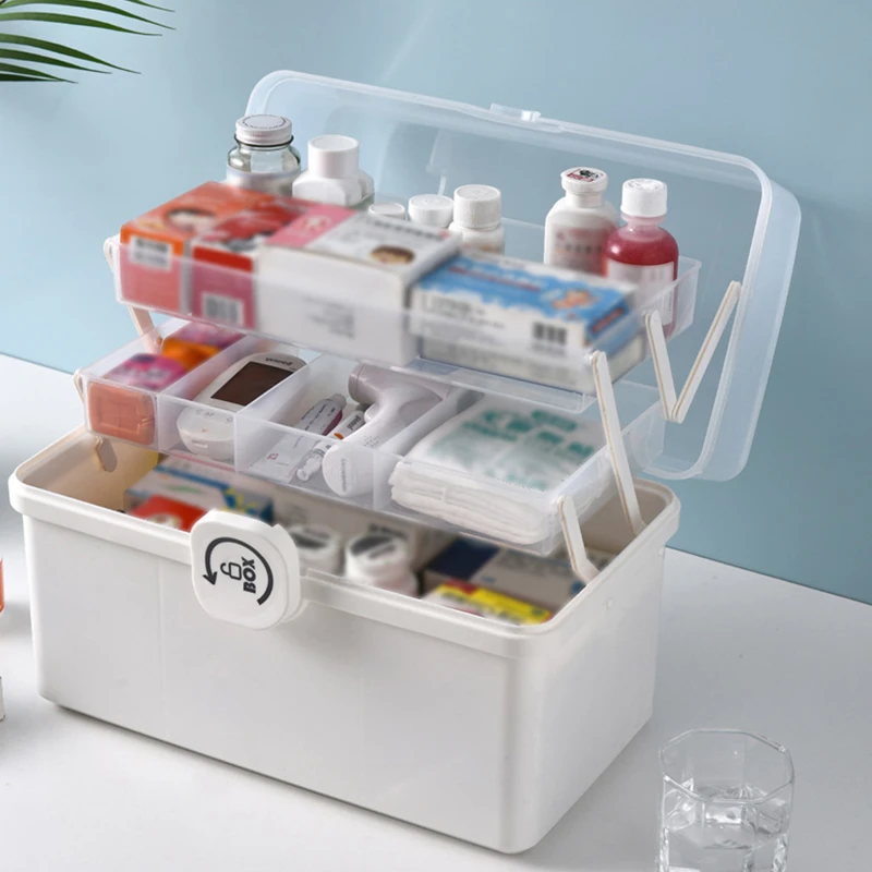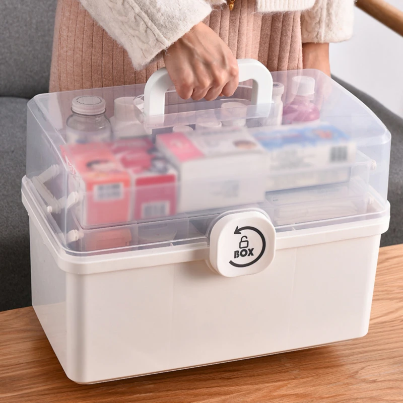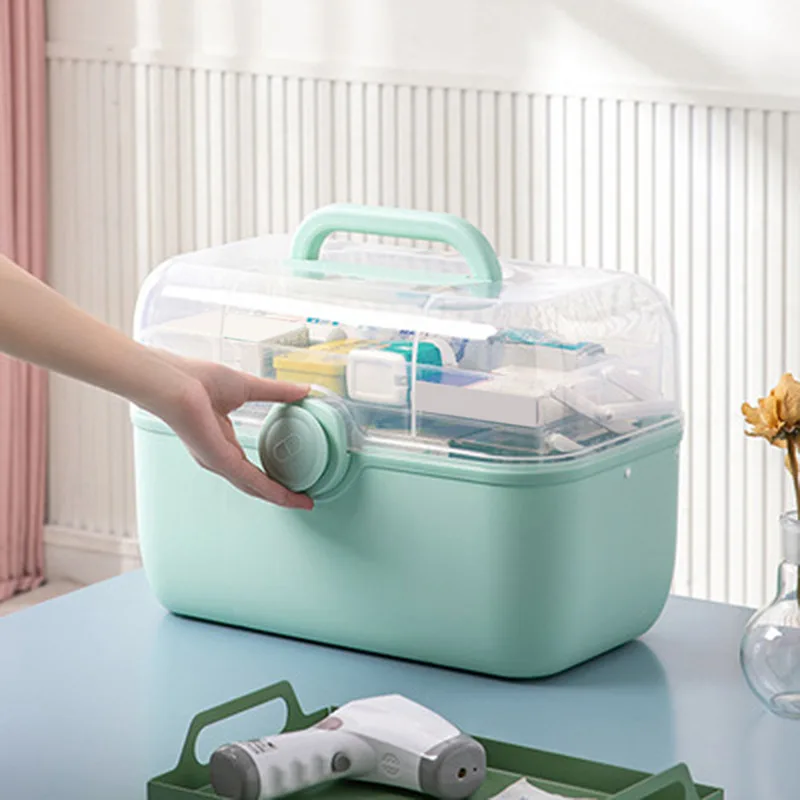 Przenośny pojemnik pierwszej pomocy przezroczysty z tworzywa sztucznego schowek medyczny o dużej pojemności rodzinny zestaw ratunkowy do przechowywania bagażu