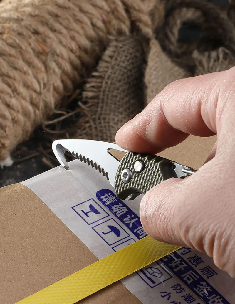 Przenośny wielofunkcyjny nóż ekspresowy, brelok do kluczy, ząbkowany hak, rozpakowanie do przenoszenia, awaryjne narzędzie survivalowe otwieracz do pudełek