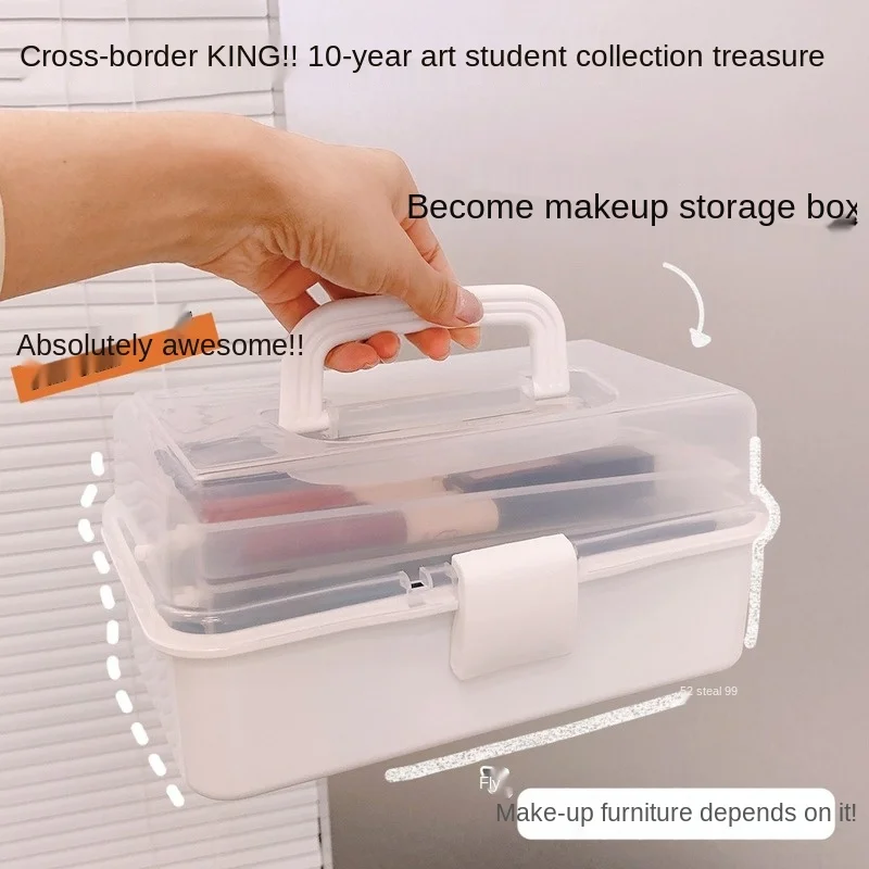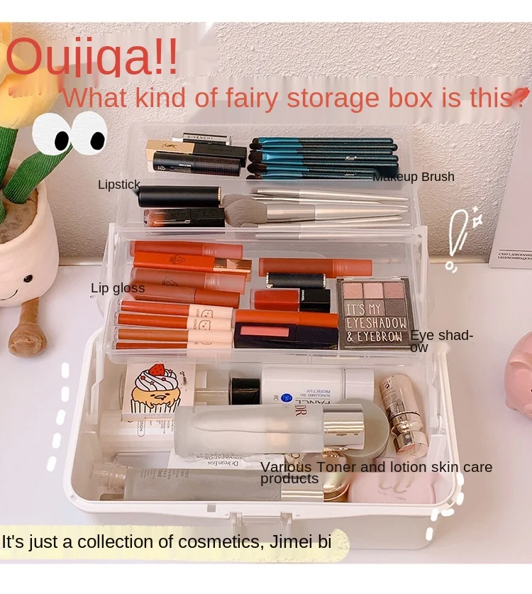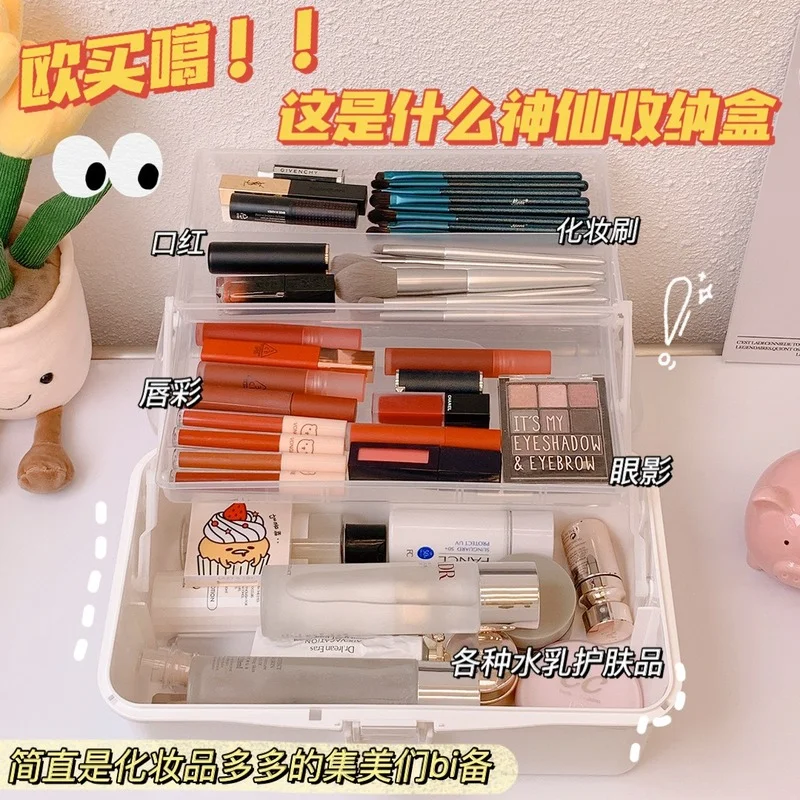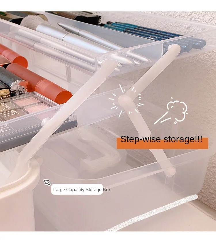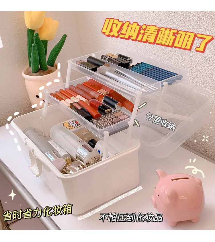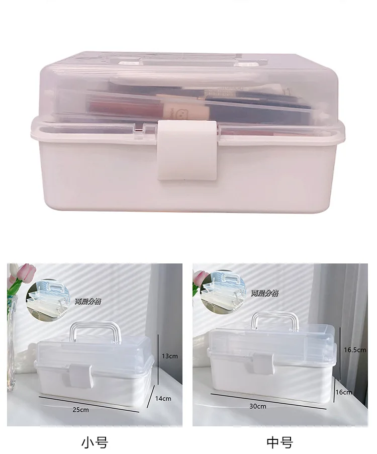 Przeźroczyste tworzywo sztuczne pudełko do przechowywania kosmetyków na biurko, dwuwarstwowy schowek medyczny, wielofunkcyjna apteczka