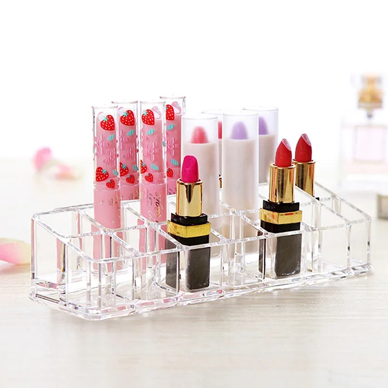 Przezroczysty akrylowy stojak na szminki 12 siatki etui na szminki pudełko do przechowywania kosmetyków organizator na przybory do makijażu rozmaitości pudełko wystawowe