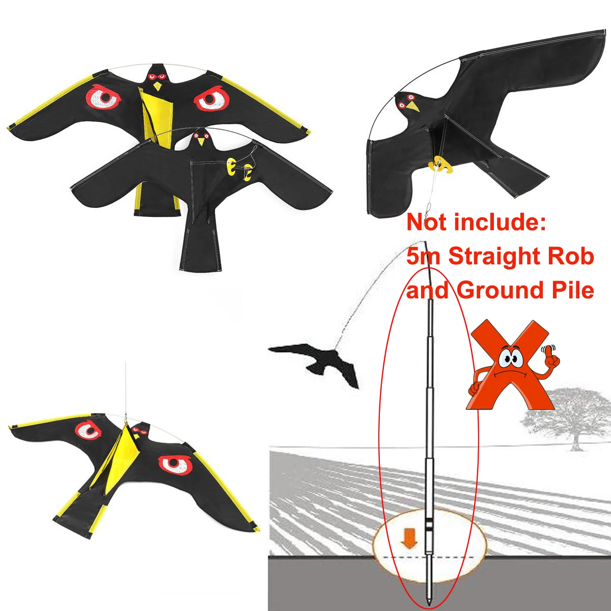 4, szerokie funkcje: latawiec eagle jest idealny do ochrony upraw przed niechcianymi ptakami, może być stosowany do zapobiegania szarpnięciu gołębi, mew na łodziach, szopach, drenach itp.