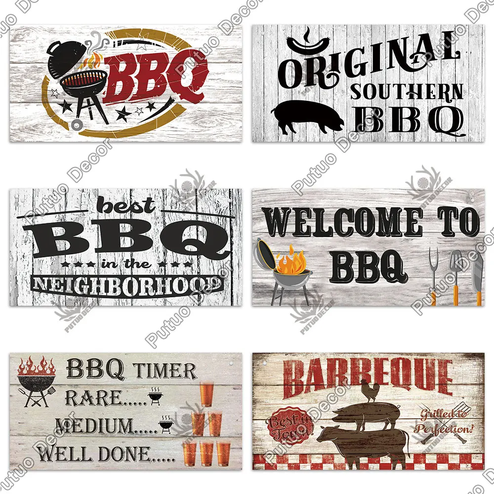 Putuo Decor BBQ zaloguj drewniane znaki Grill drewniana plakietka na prezent strona główna kuchnia podwórko dekoracja ścienna Grill płytki dekoracyjne