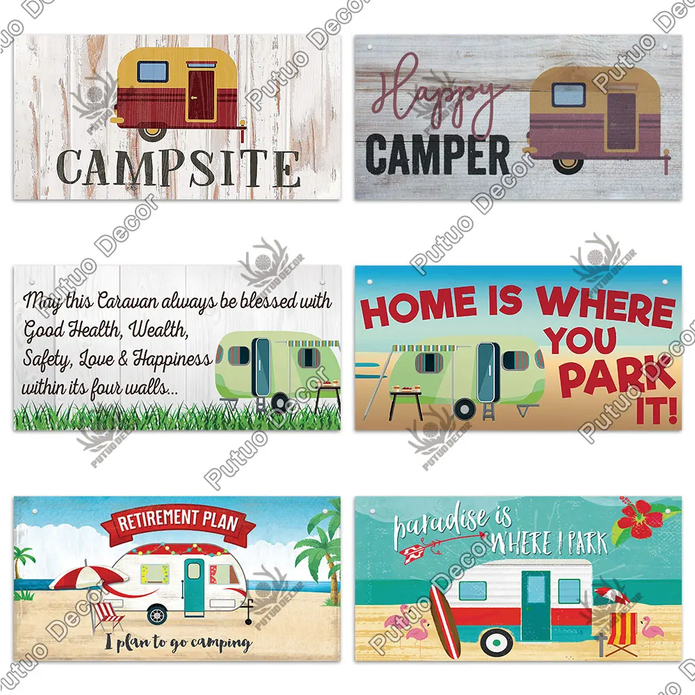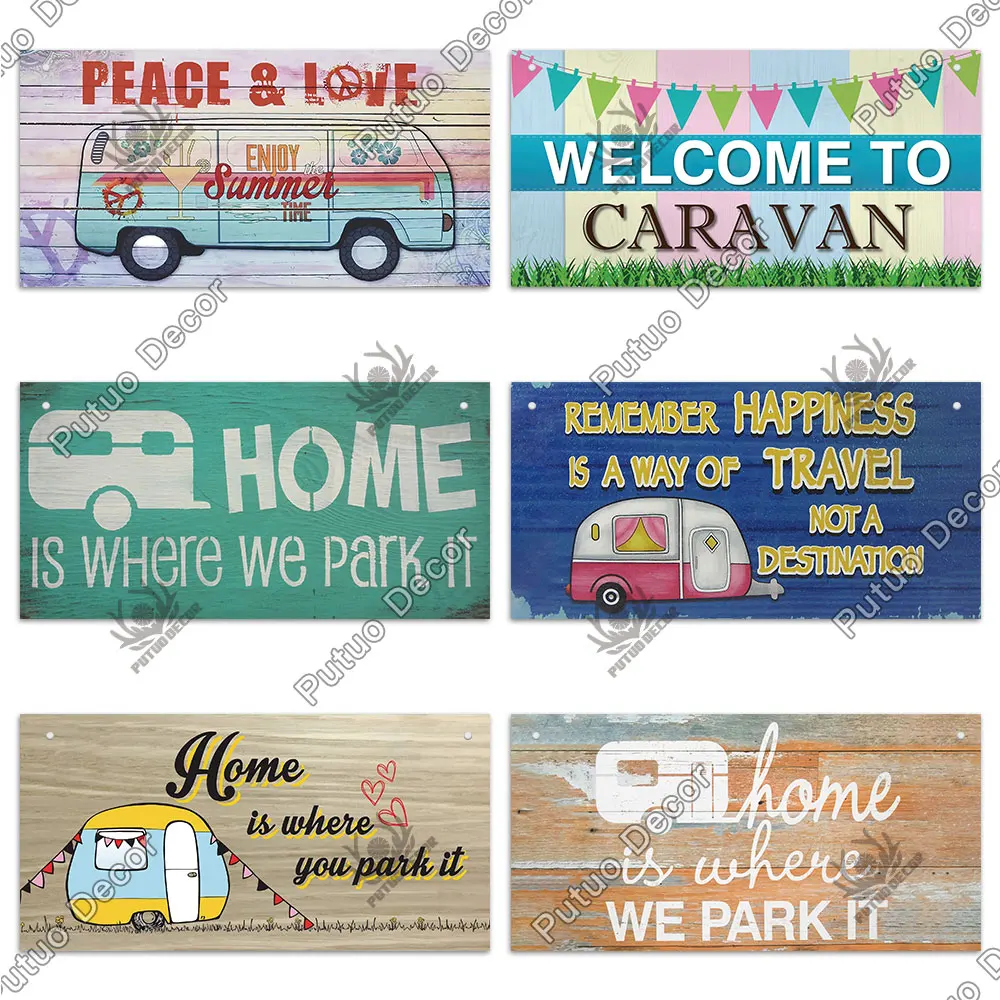 Putuo Decor Beach Caravan znaki drewniana ściana znak dekoracyjne tablice do salonu wystrój drzwi do domu dekoracja pokoju artykuły kempingowe