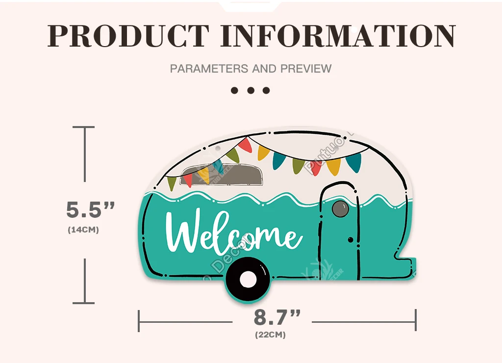 –8.7 „x 5.5” Glamper kształt drewniany znak drukowane z trwałe w pełnym kolorze wykończenie na drewniana MDF przez wiele lat z wyświetlania.