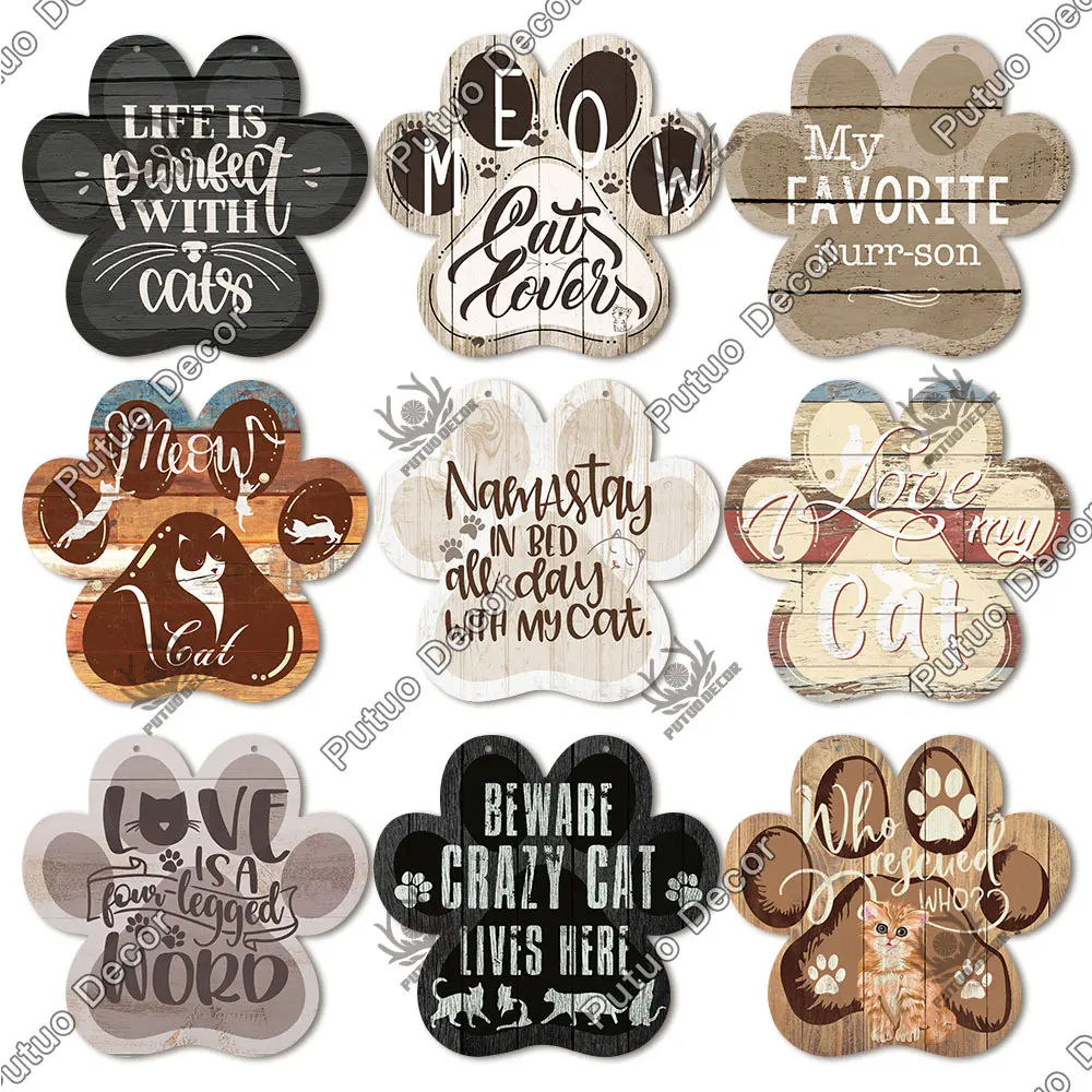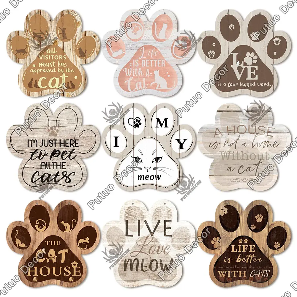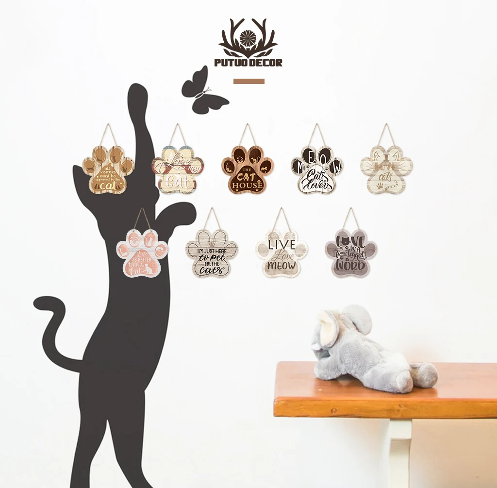 Trwałe–5.9 „* 5.5” łapa kota kształt drewniany znak drukowane z trwałe w pełnym kolorze wykończenie na drewniana MDF przez wiele lat z wyświetlania.