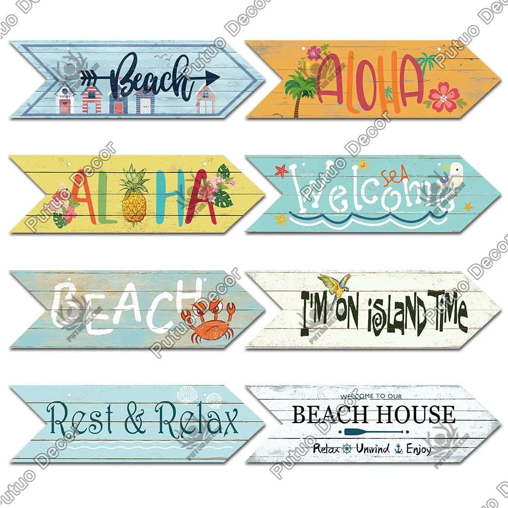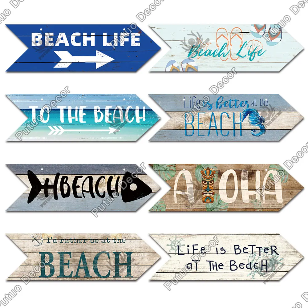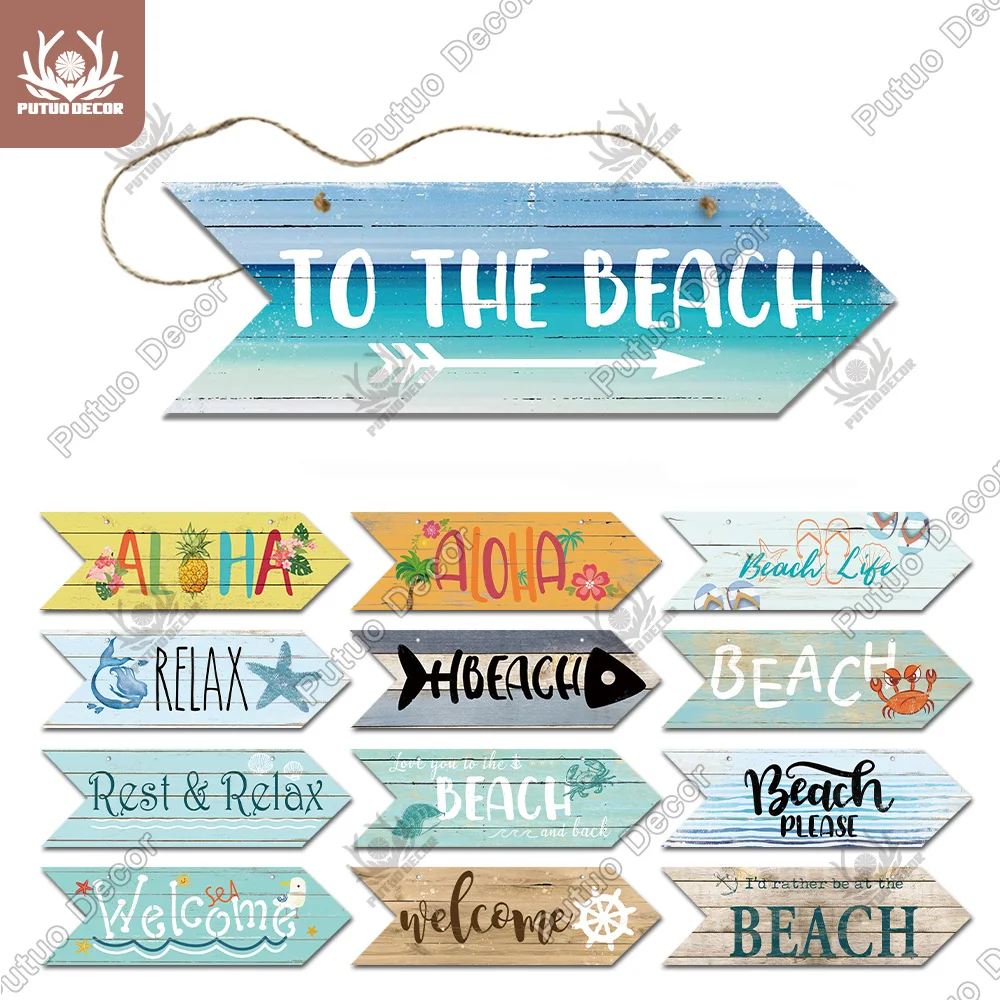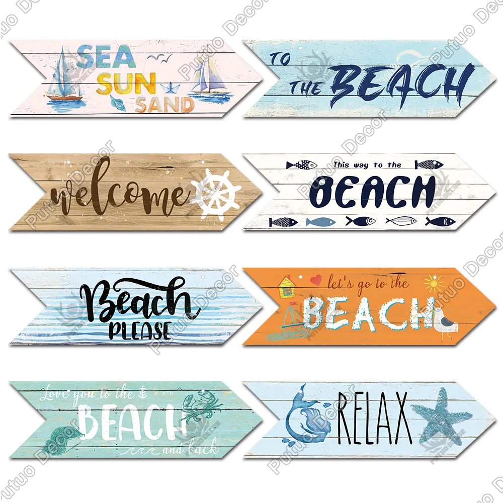 Putuo Decor plaża strzałka drewniana ściana tablica znak plaża nadmorski przewodnik drogowy dekoracja ścienna wskaźnik wiszący dom na plaży Deocr
