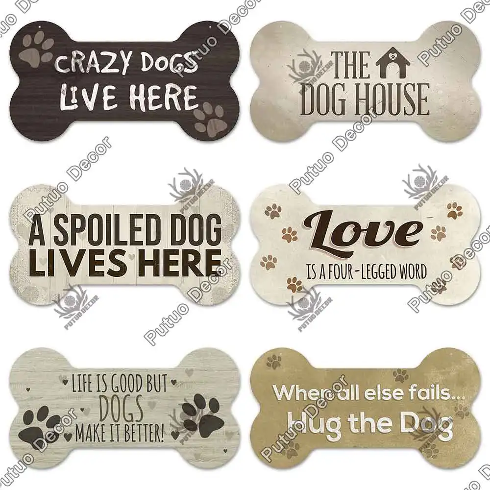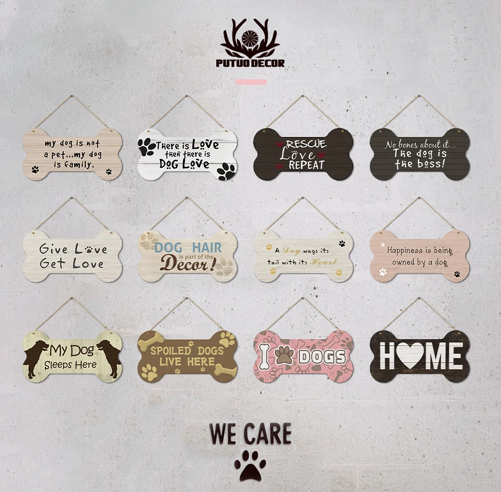 Putuo Decor w kształcie kości nieśmiertelnik tablica drewno piękny przyjaźń drewniany naszyjnik drewniane tablice znaki dla miłośnik psów dekoracja domu
