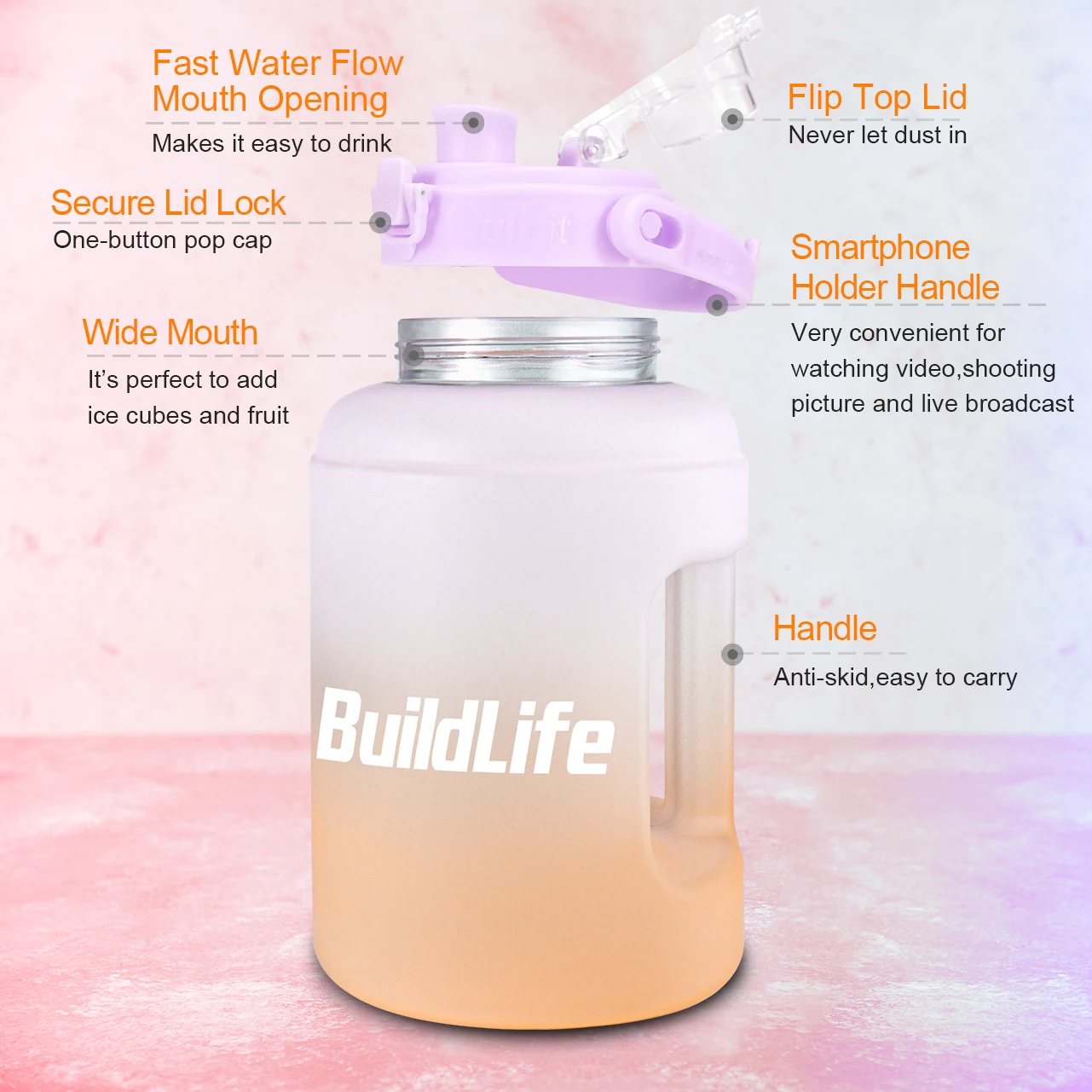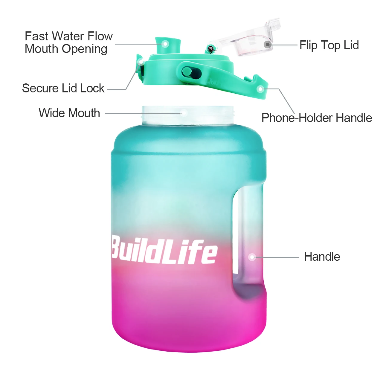 QuiFit 2.5L 3.78L szerokie usta uchwyt na telefon galon butelki na wodę flik-flop BPA bezpłatne Sport Fitness turystyka siłownia podróże Outdoor Jugs