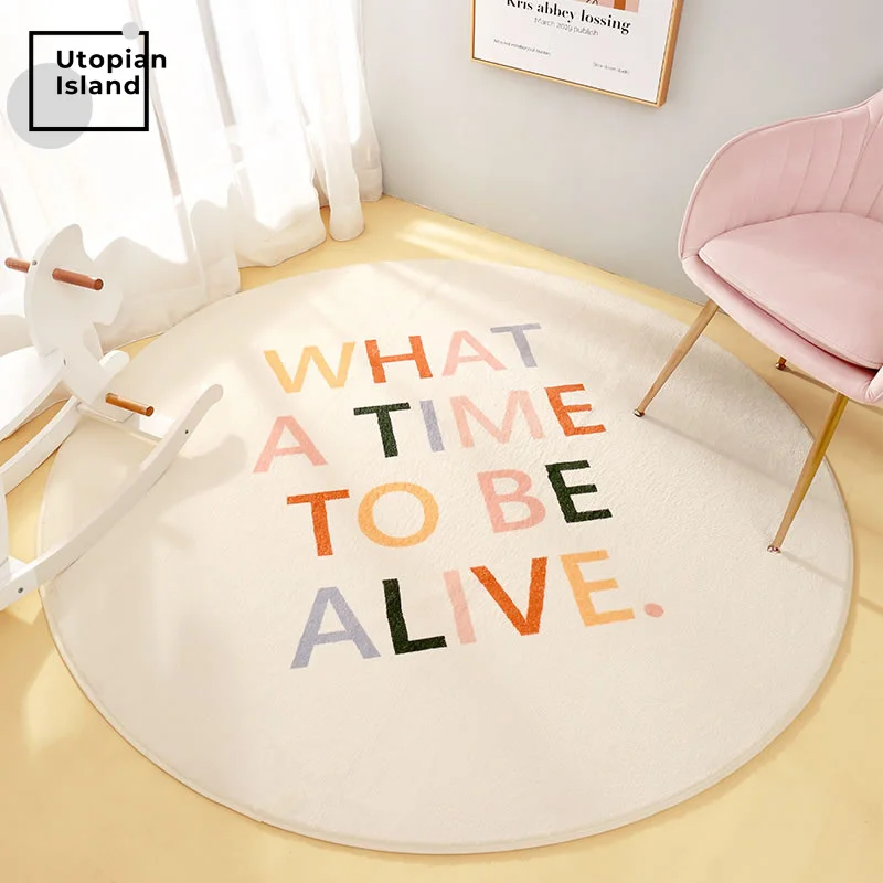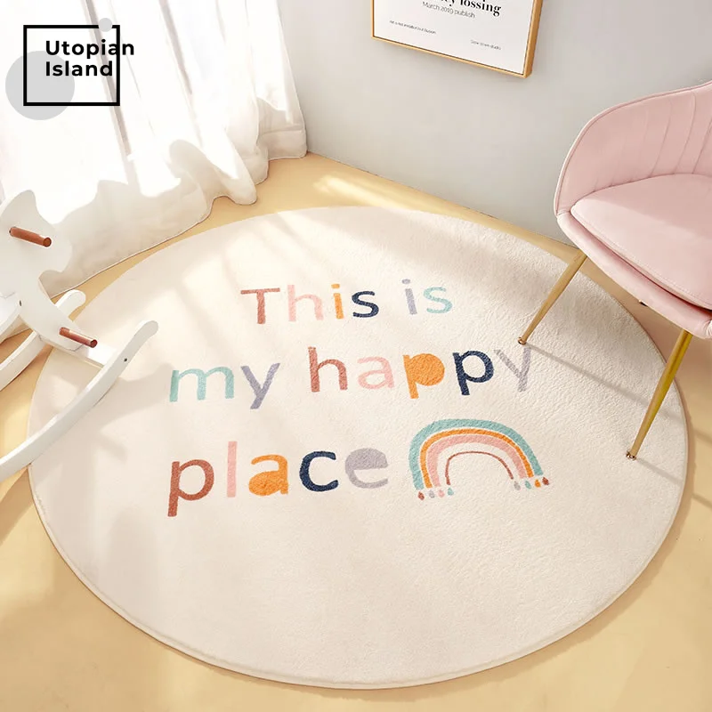 Tęczowy okrągły dywan nowoczesny salon puchaty dywan