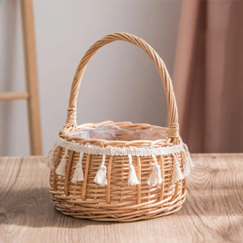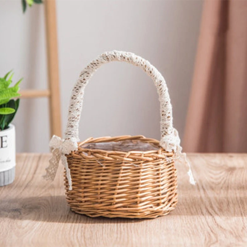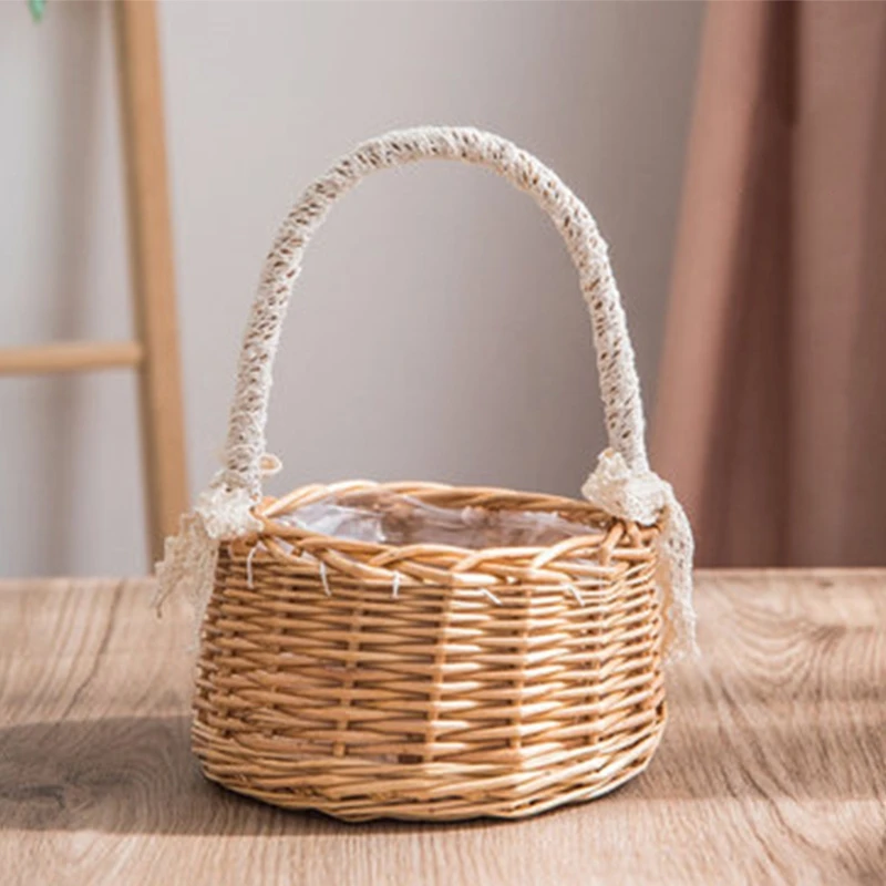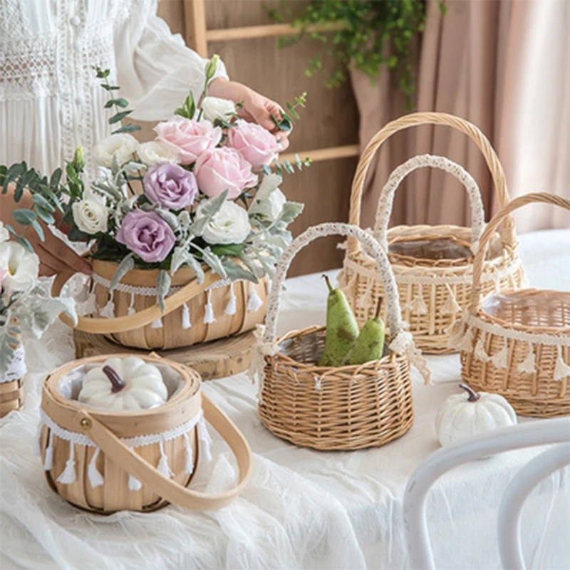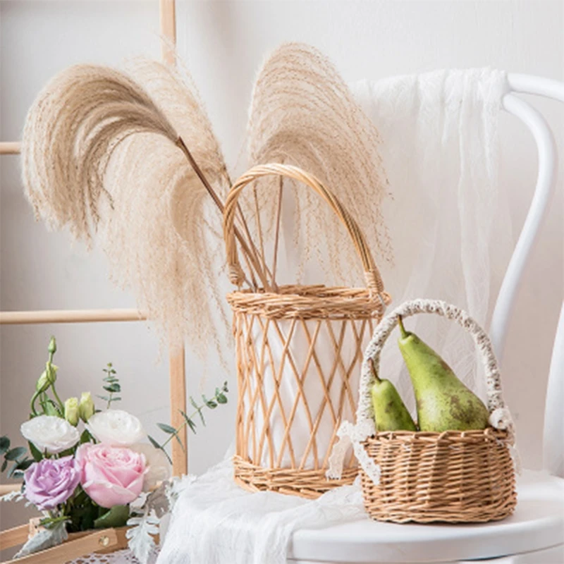 Ręcznie robione naturalne tkane rattanowe kwiatowe koszyk ręczny strona główna kuchnia ogród pojemnik na warzywa pojemnik na sadzarkę wesele Ta