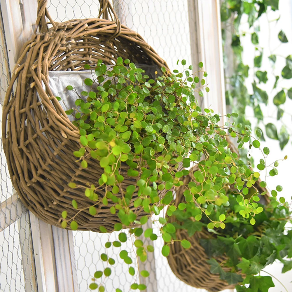 Ręcznie robiony wiklinowy ratanowy kosz na kwiaty wazon rattanowy kosz wiszący wazon dekoracje ścienne pojemnik do przechowywania roślin kosz dekoracji wnętrz