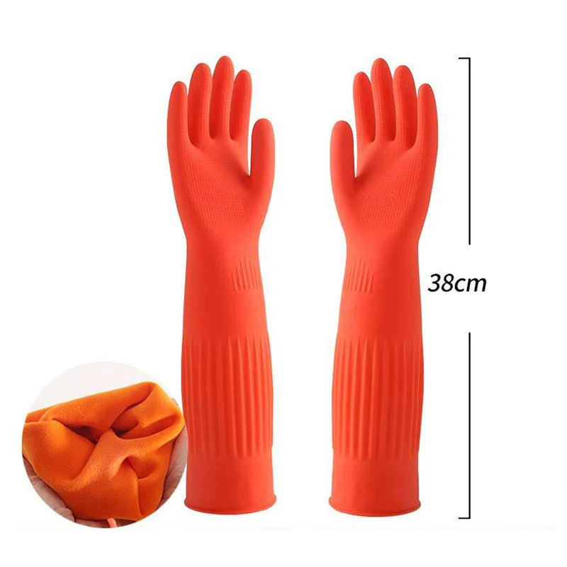 Rękawice domowe Rękawice kuchenne rękawice lateksowe rękawice do zmywania naczyń gorąca woda flokowanie ciepłych narzędzi czyszczących Rękawice robocze anty cięte gumowe rękawice ogrodnicze kobiety długie