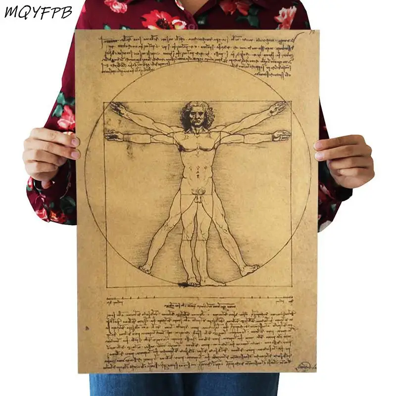 Rękopis Da Vinci plakat z papieru pakowego obrazy do dekoracji mieszkania naklejka ścienna do pokoju