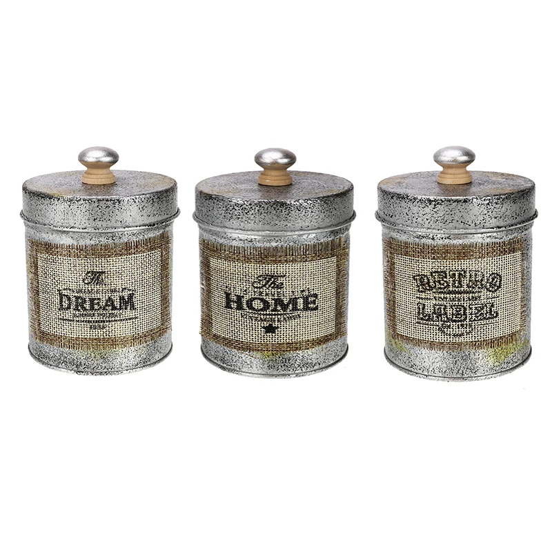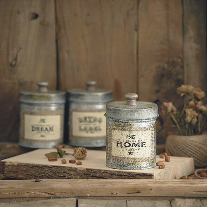 Retro antyczne metalowe słoiki do przechowywania organizator pulpit rozmaitości Box zastawa stołowa do kuchni nakrętki na przekąski słoiki do przechowywania