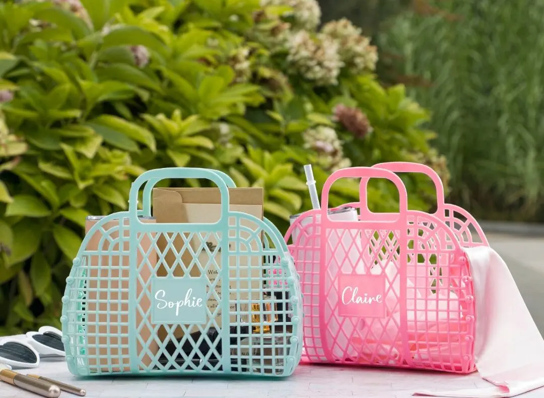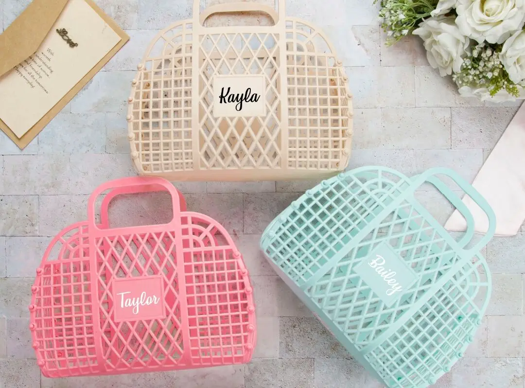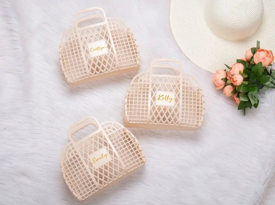 Retro galaretki kosz spersonalizowany prezent torba druhna torebka typu Jelly Bag kwiat dziewczyna prezent Party torba na plażę dużego ciężaru druhna wniosek
