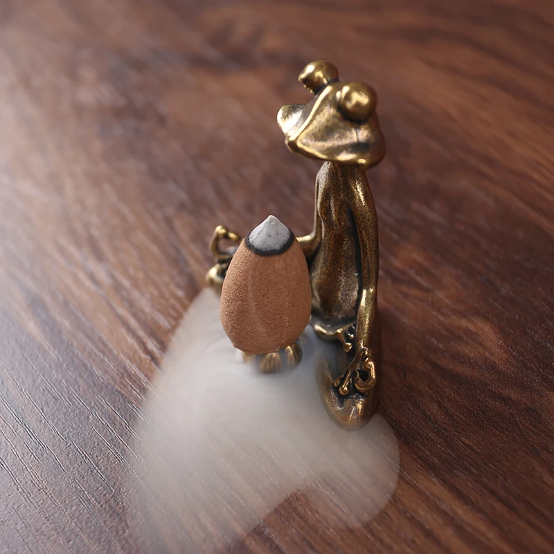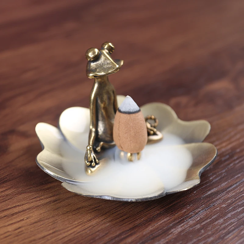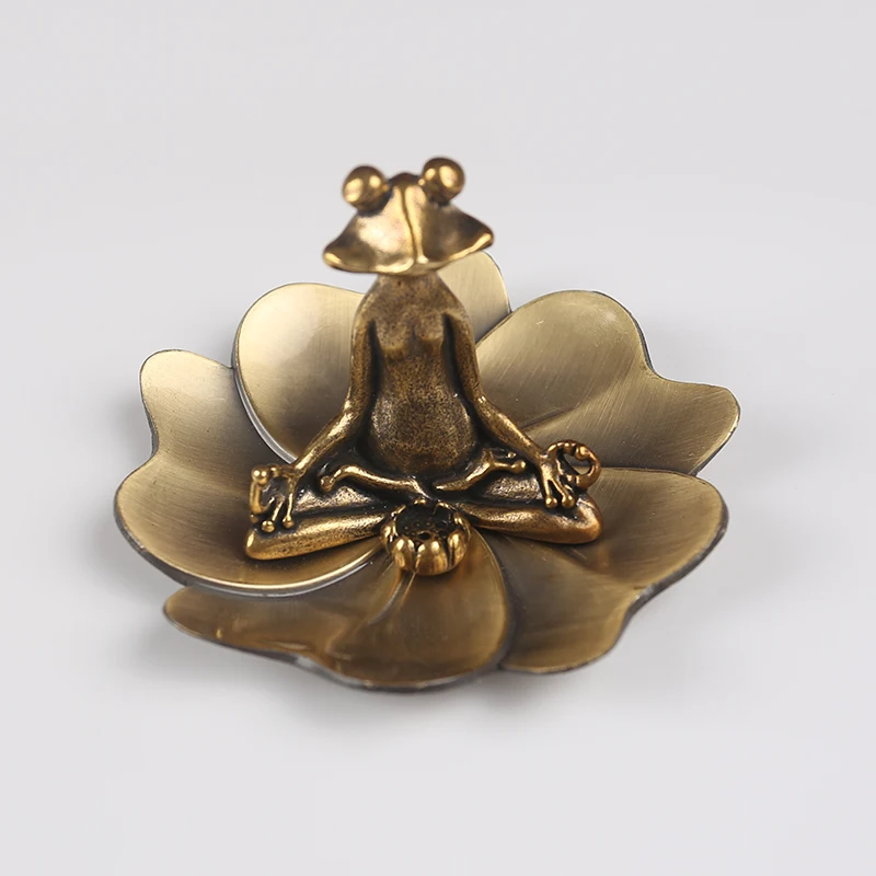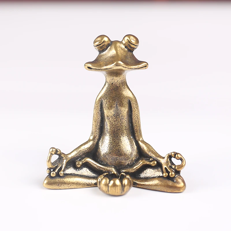 Retro mosiądz medytować Zen buddyzm żaba statua mała ozdoba miedź zwierząt rzeźba kadzidło palnika dekoracja biurka domowego herbata zwierzę domowe