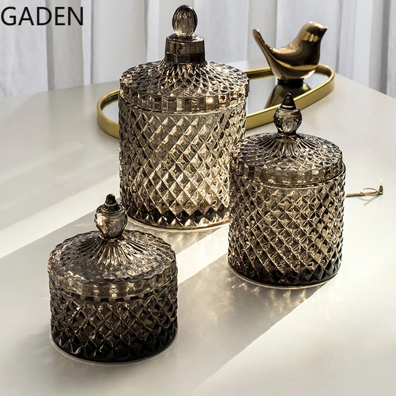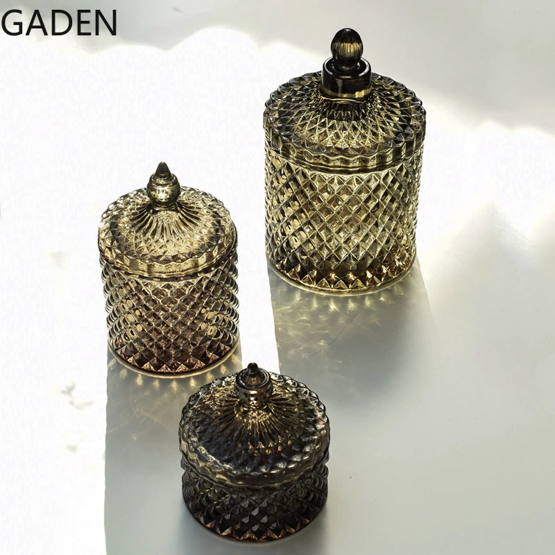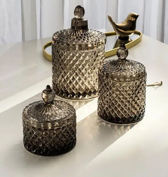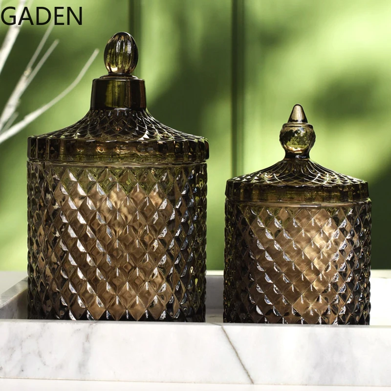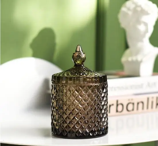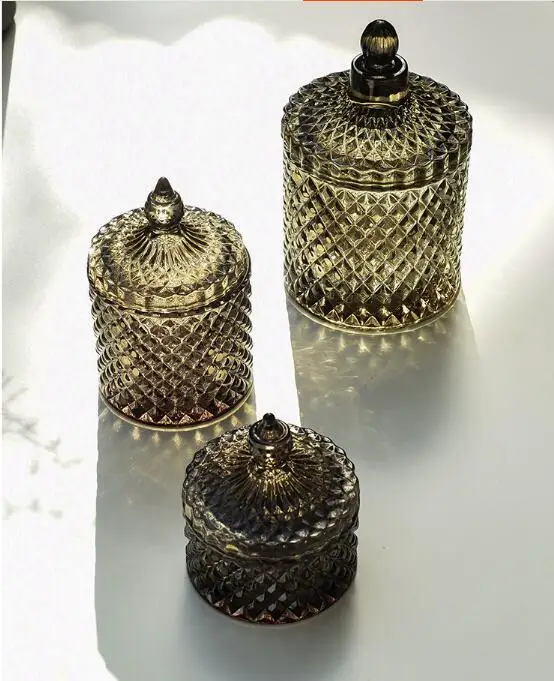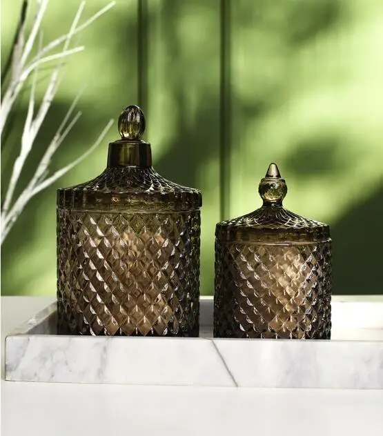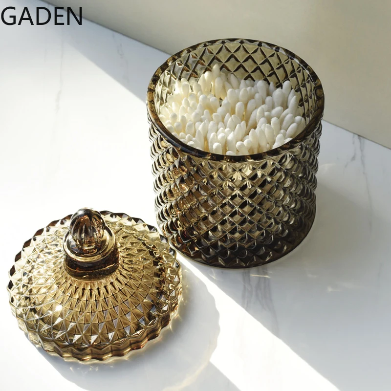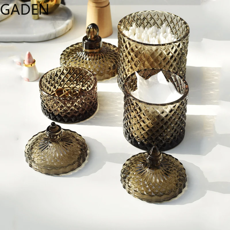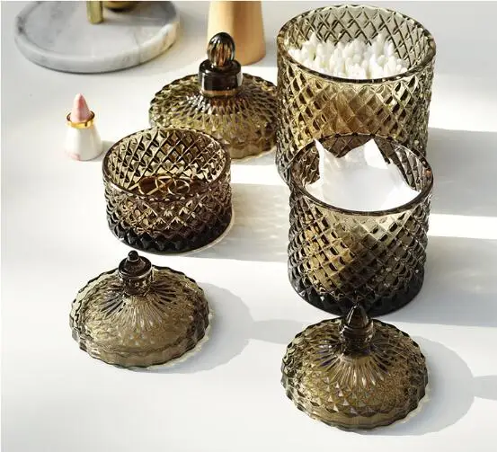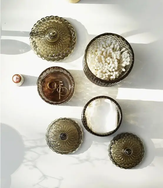 Retro zielony szkło zbiornik Nordic Home biżuteria dekoracyjna Box bawełna zbiornik wacik bawełniany dekoracyjne ozdoby