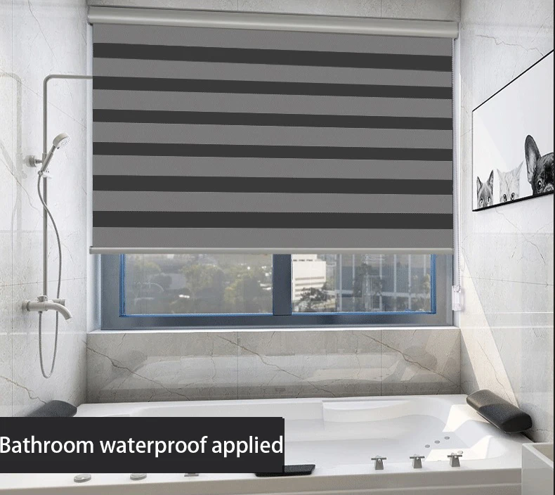 Zebra Roller Blinds Blackout for Windows Black Zebra Shades Waterproof Thermal Insulating Curtain for Bathroom Bedroom Estores
