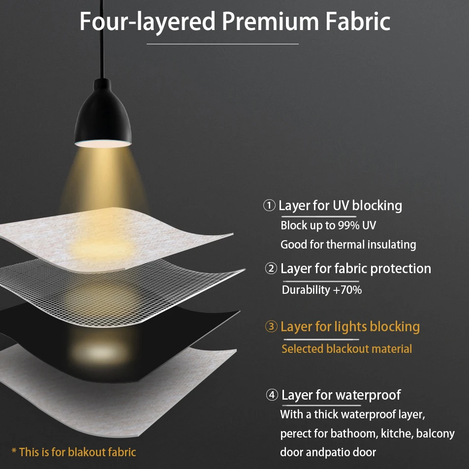 Najwyższej jakości tkanina filtrująca światło jest wystarczająco mocna i trwała, aby wytrzymać odkształcenia. Krawędź tkaniny jest super równa, ładnie wygląda.