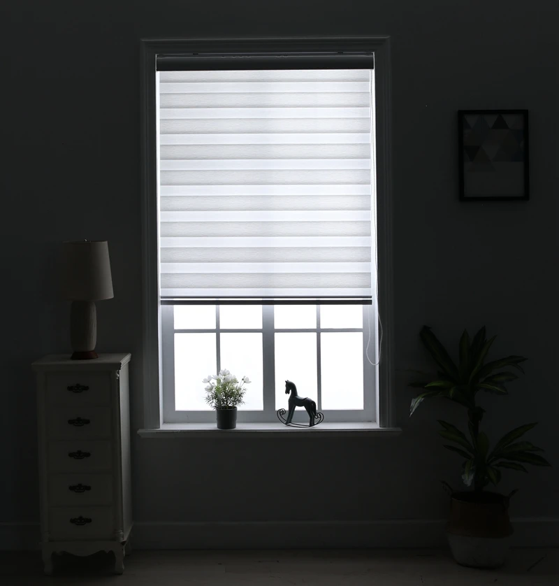Nasza oferta filtrowania Zebra odcienie światła zarówno przezroczysta tkanina i filtrowanie tkaniny w tym samym odcień światła, unikalne tkaniny oferuje zebra jak wzór z paski na przemian filtrowanie światła i sheer odcienie.