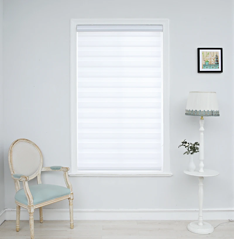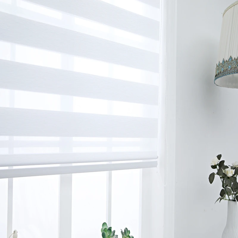 Rolety Zebra poziome zasłona okienna dwuwarstwowe rolety okna niestandardowe cięte na wymiar zasłony z kości słoniowej do salonu