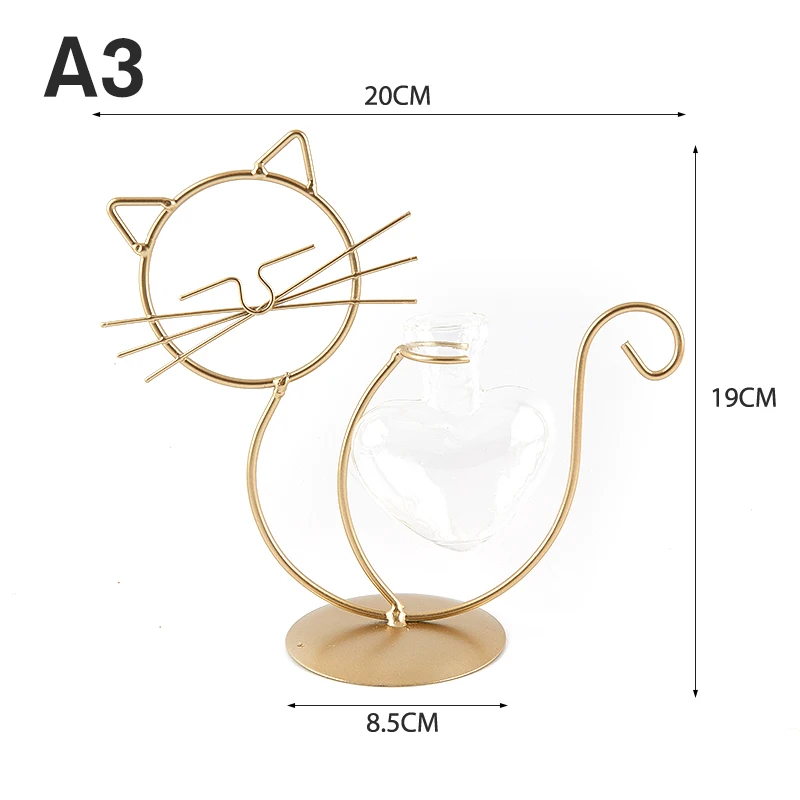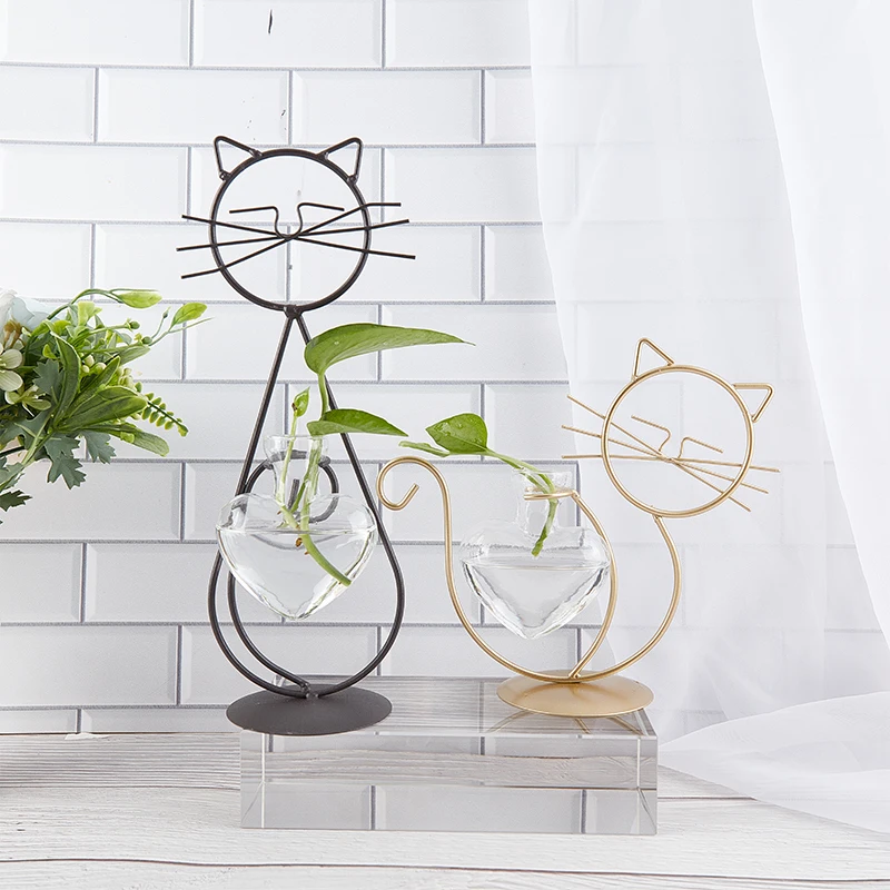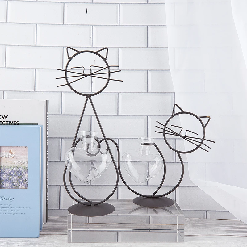 2. Unikalny design: kreatywny design ramy kota w połączeniu ze szklany wazon, dodając poczucie nowoczesności i stylu do twojego środowiska życia. Prosty i elegancki wygląd nadaje się do każdej dekoracji domu, łatwy do dopasowania, będzie najlepszym i najcieplejszym prezentem.