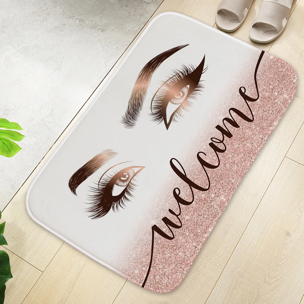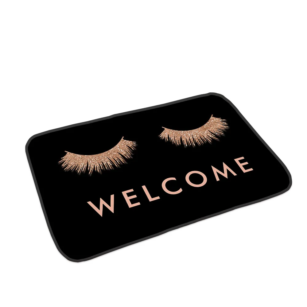 Róża złoty brokat rzęsy wycieraczka świecący makijaż gumowa wycieraczka pod drzwi dywan dywan Chic Home Beauty Studio Home Decor