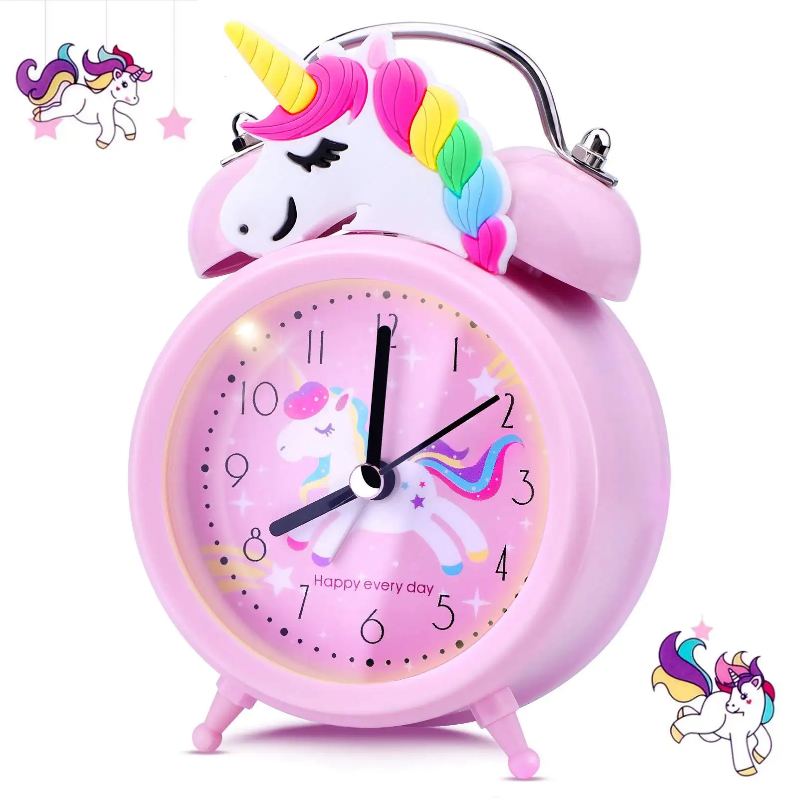 Różowy jednorożec dzieci budzik podwójny dzwon zegar z podświetleniem ładny zegar na biurko dekoracji wnętrz будильк Kid prezenty reveil enfant